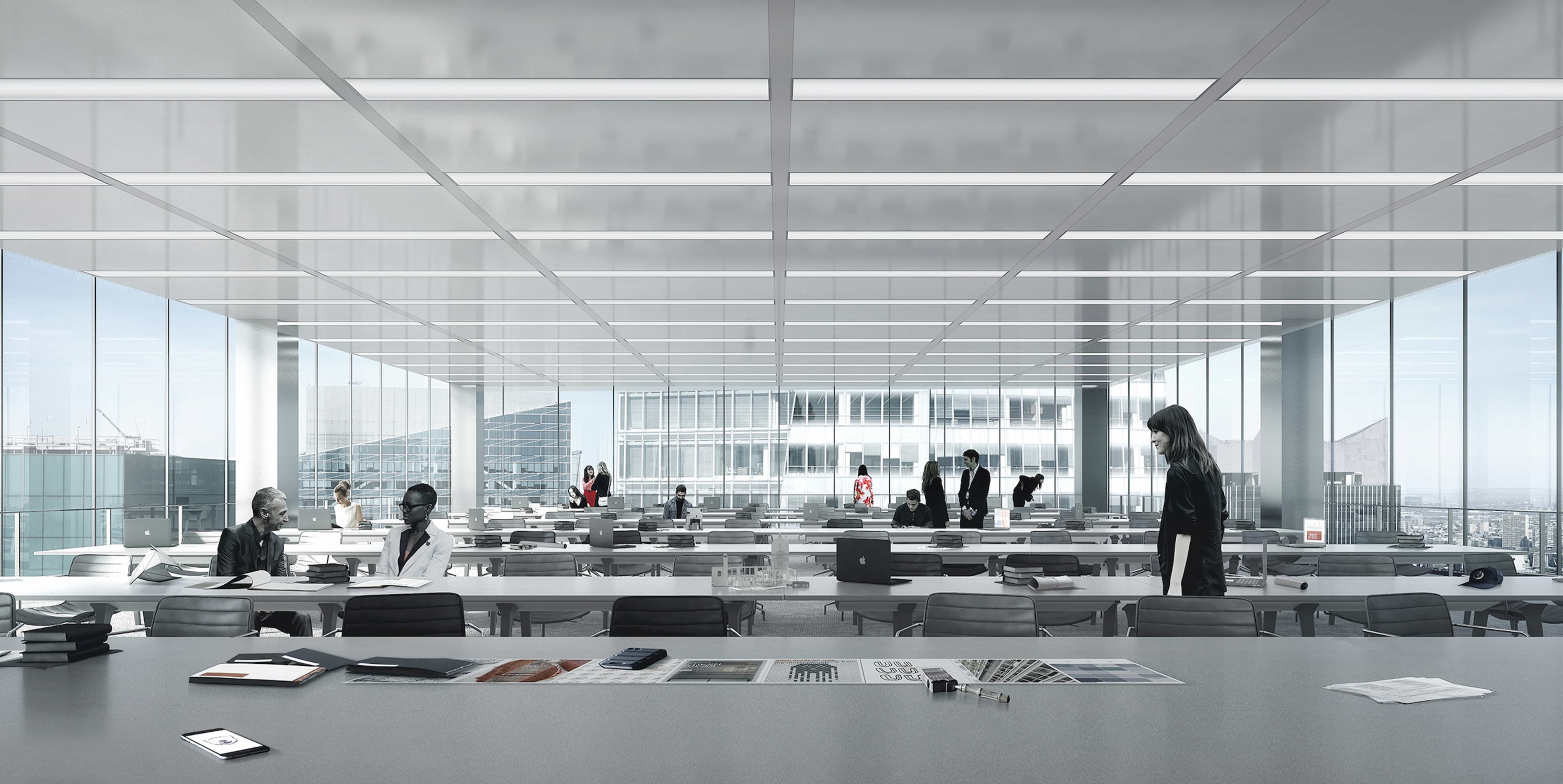 Just as Lever House pioneered the curtainwall to maximize the impact of its slenderness and views, IIᴑᴑ creates a new standard in office window walls: an ultra-clear (55% VLT), frame-less (no mullions to impede views) curtainwall.