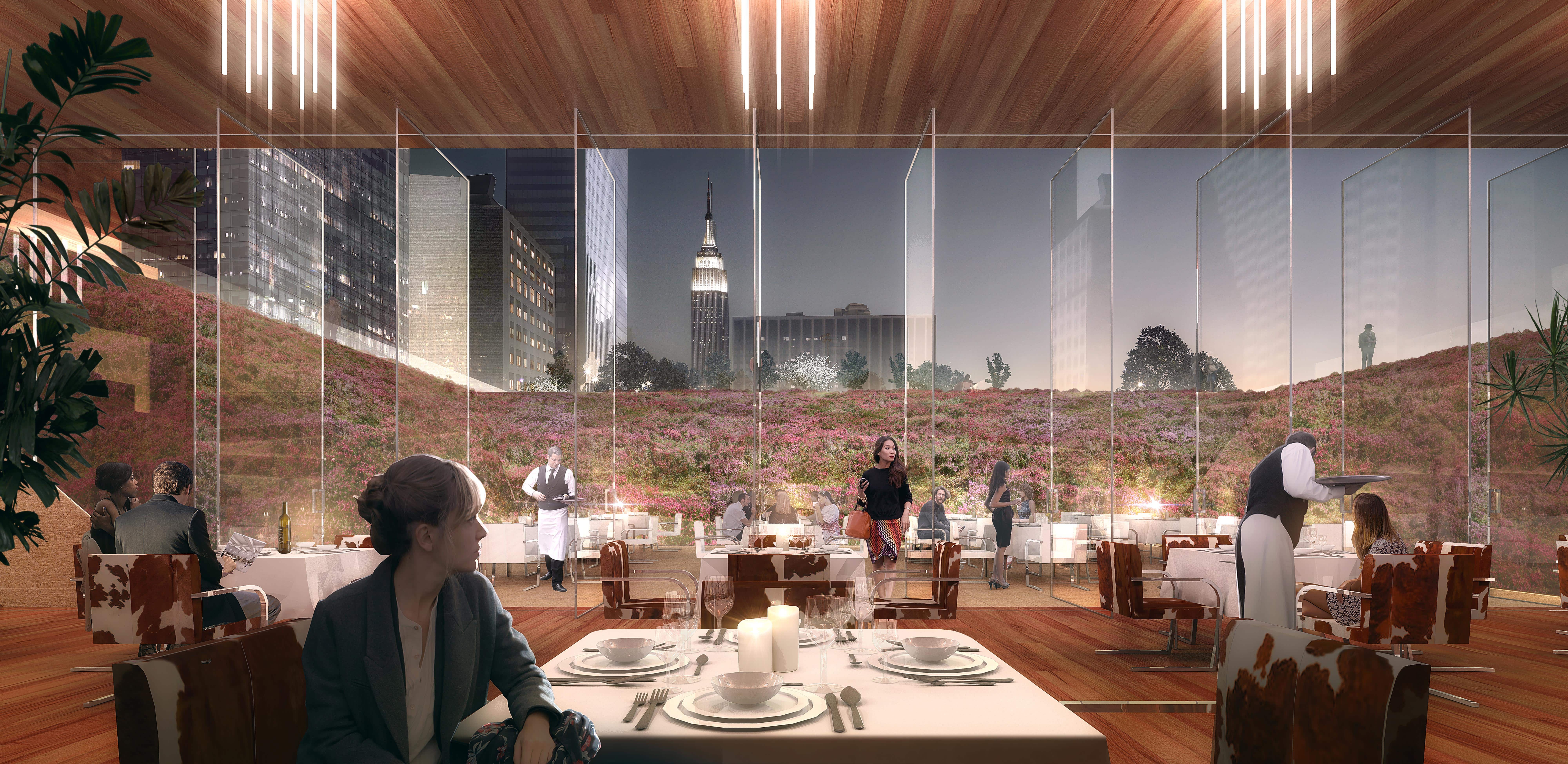 Upon arrival, visitors take in the view of these lush green carpets with the Empire State Building as backdrop. The roof is parceled into a bento box of highly programmed spaces, such as an amphitheater, …