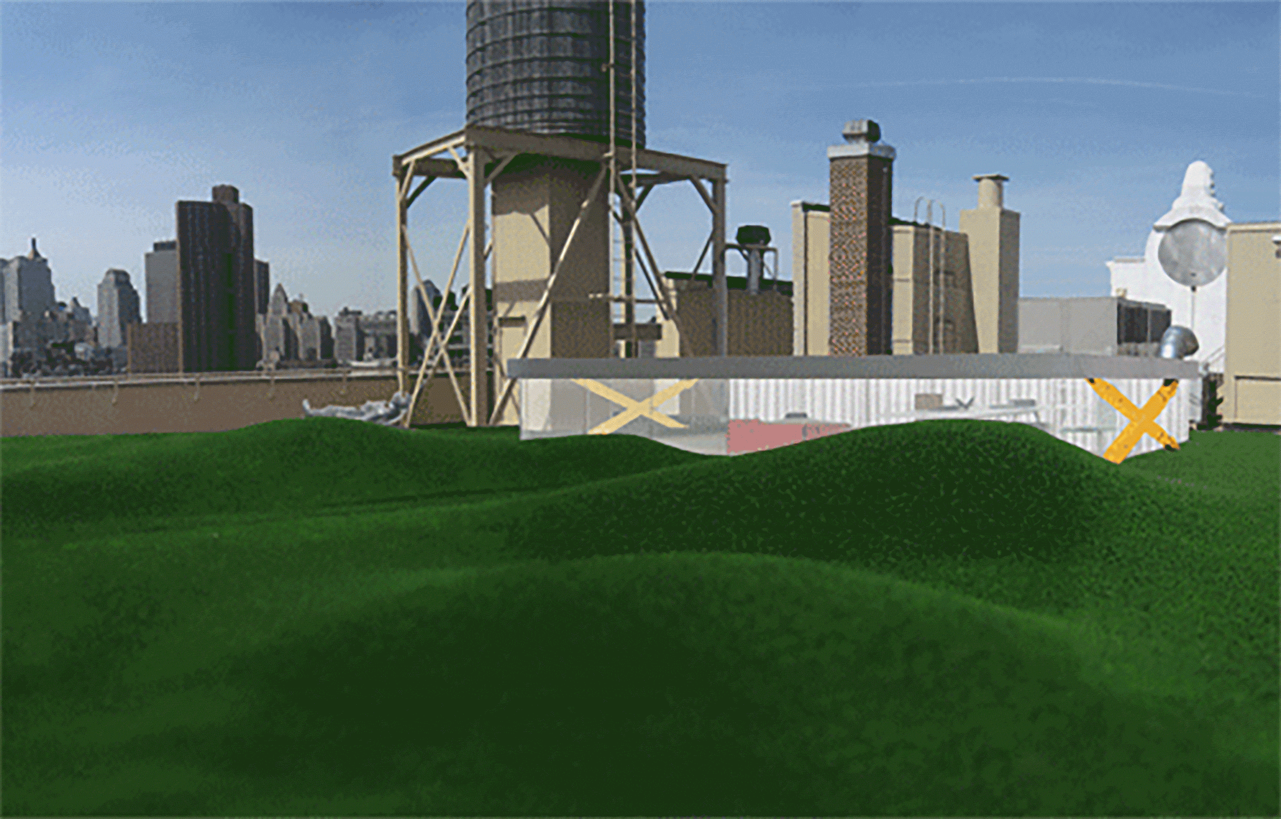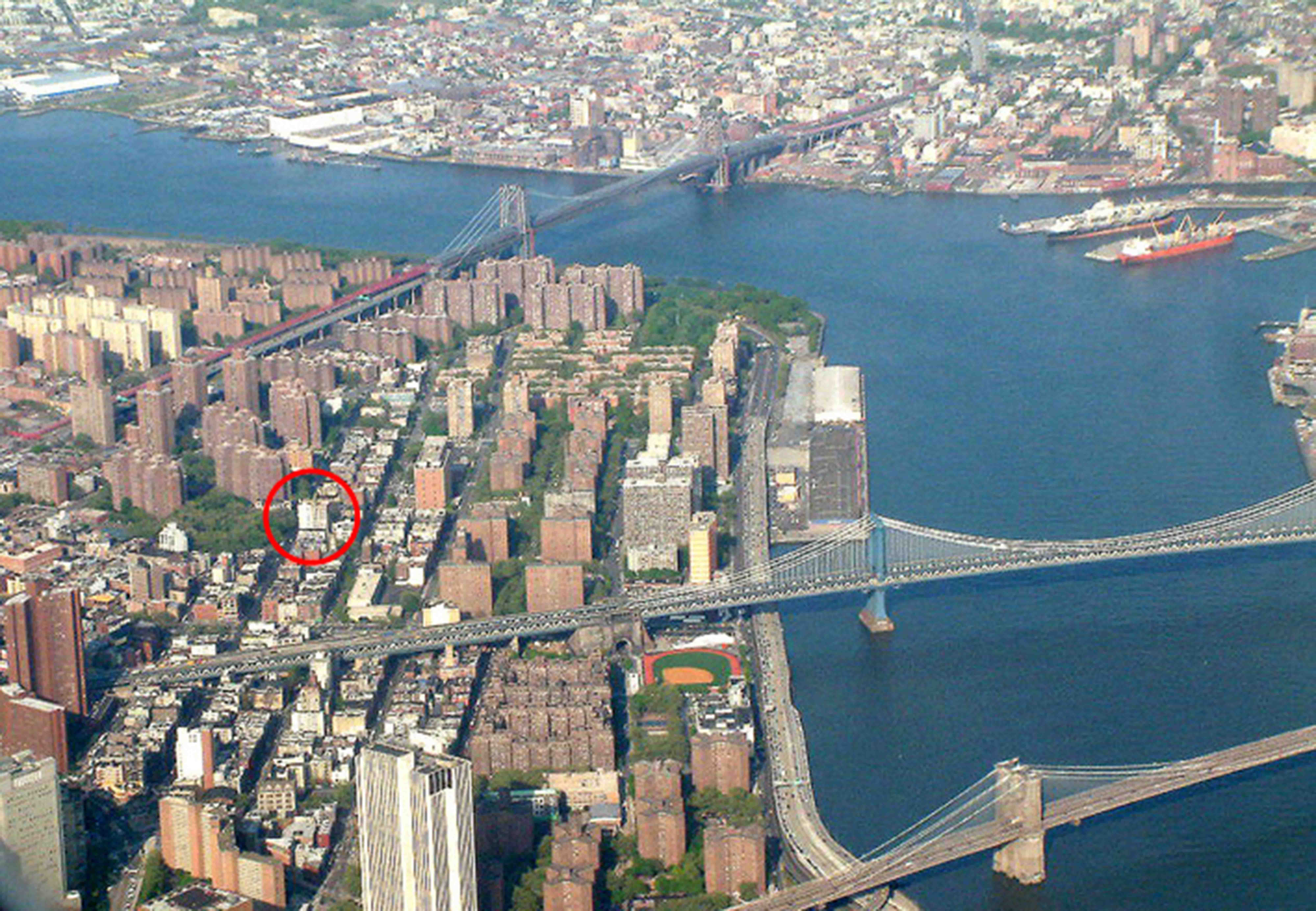 The site is the penthouse of the landmarked Jewish Daily Forward Building. The apartment came with rights to half of the building’s roof terrace, overlooking the Lower East Side, Chinatown, and the Manhattan and Brooklyn Bridges.