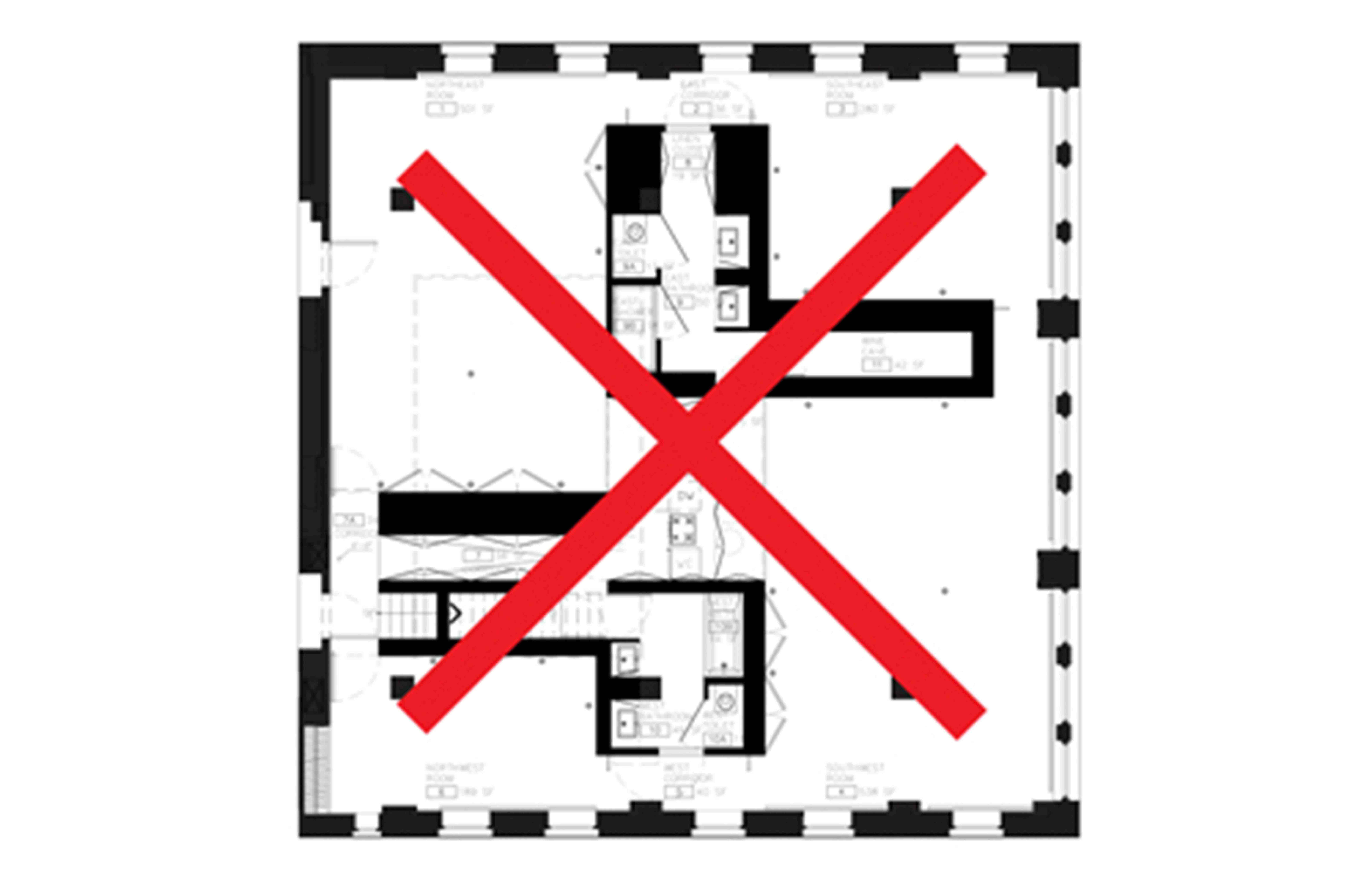 Any additional poché, such as typical interior walls, would therefore render the project highly inefficient and reduce its value.