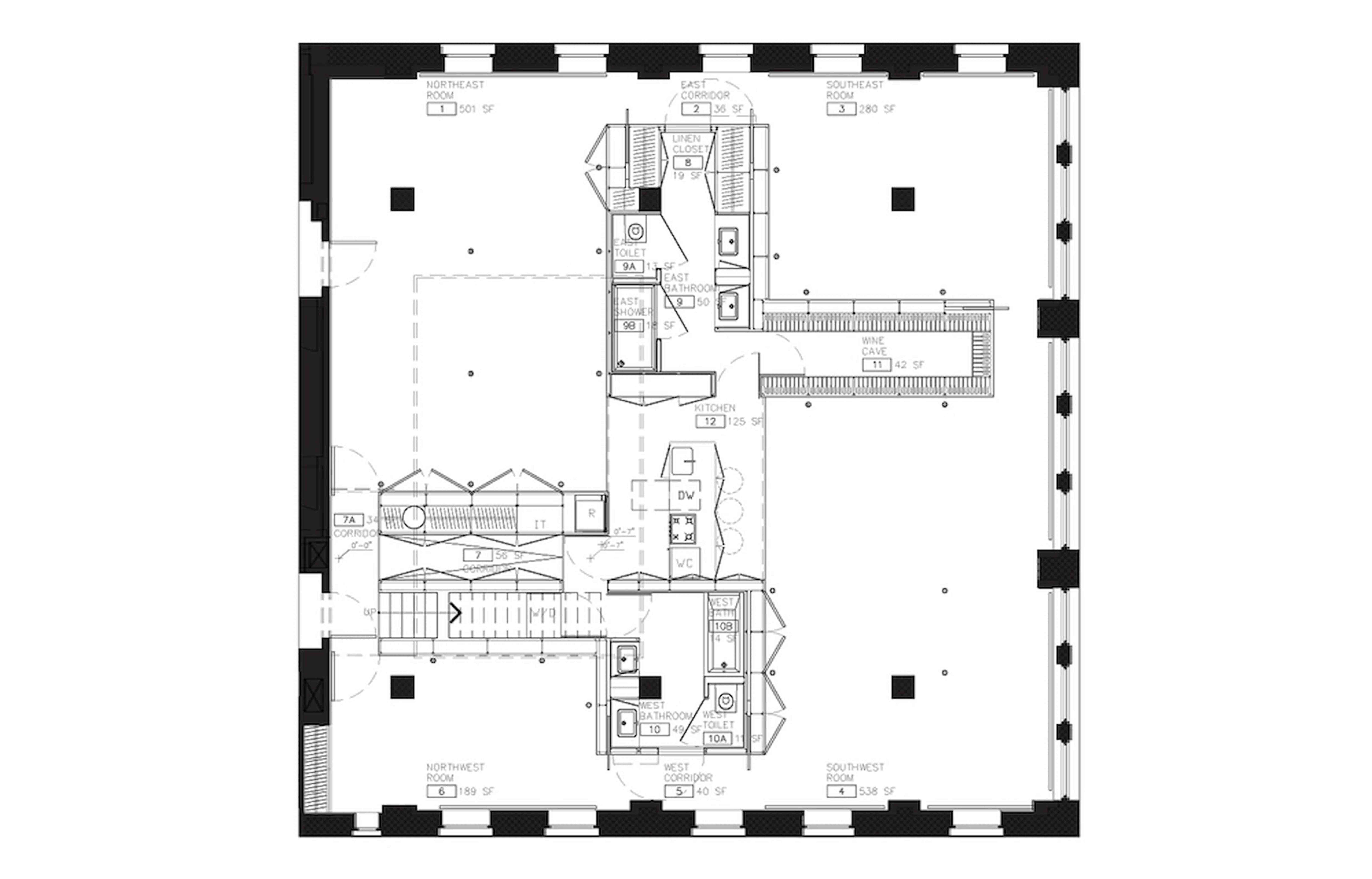 In the Forward Building, this percentage of poché was already present in the thick perimeter walls.