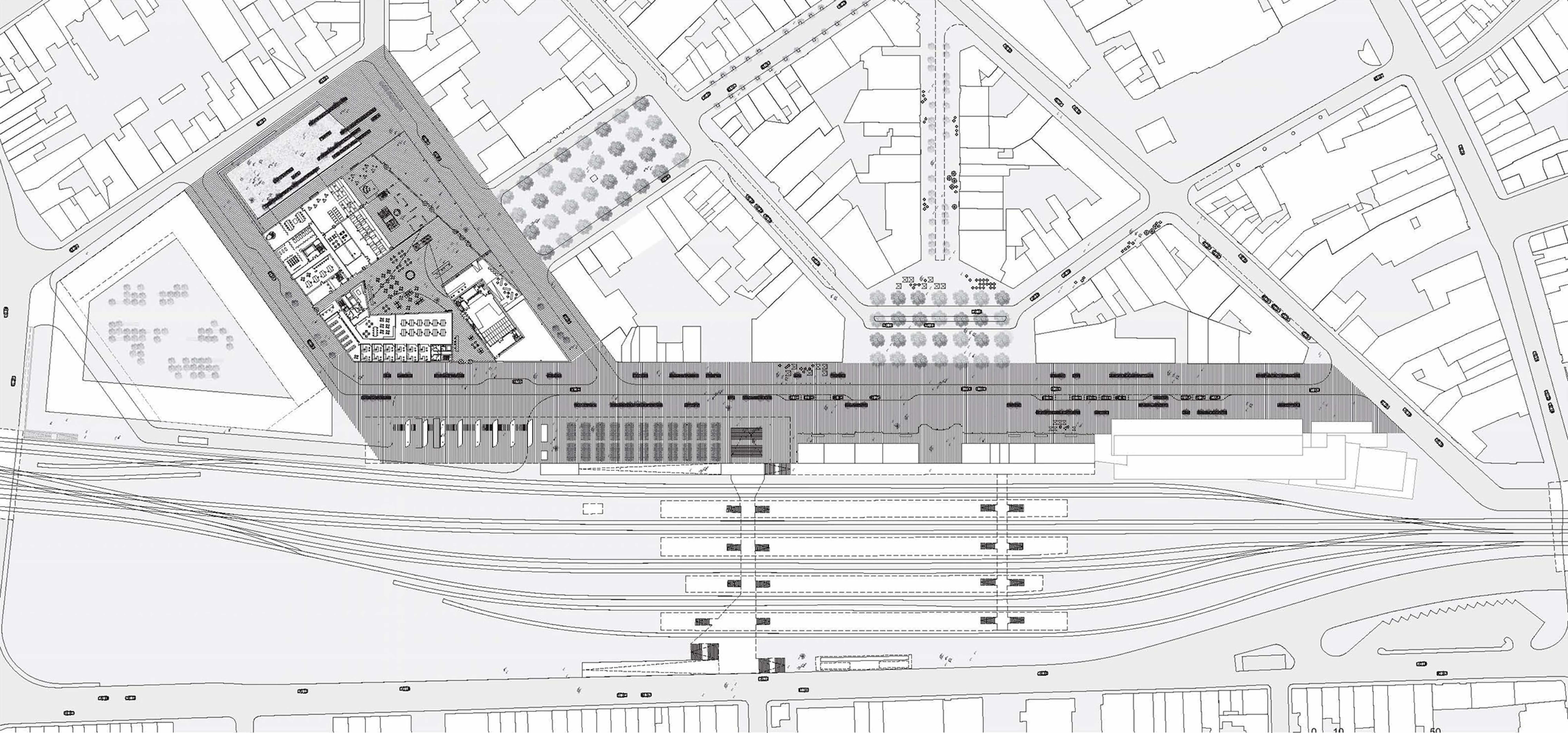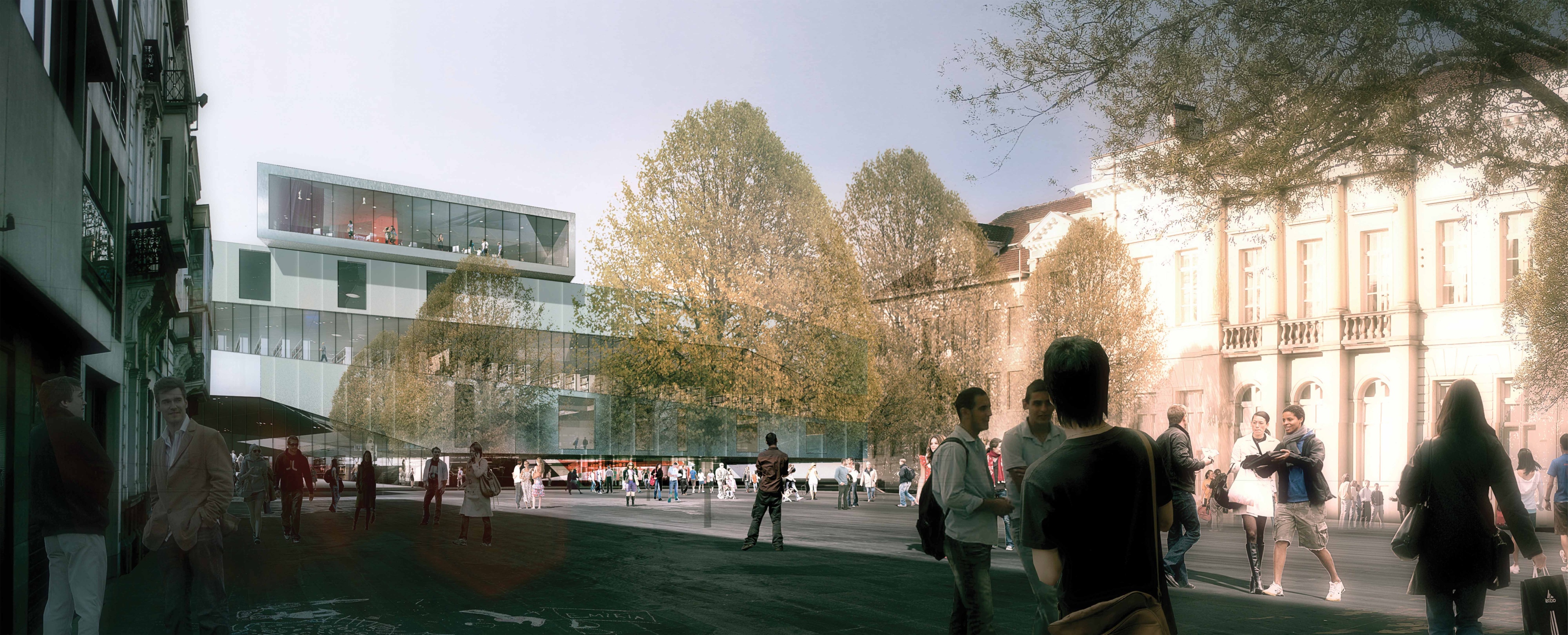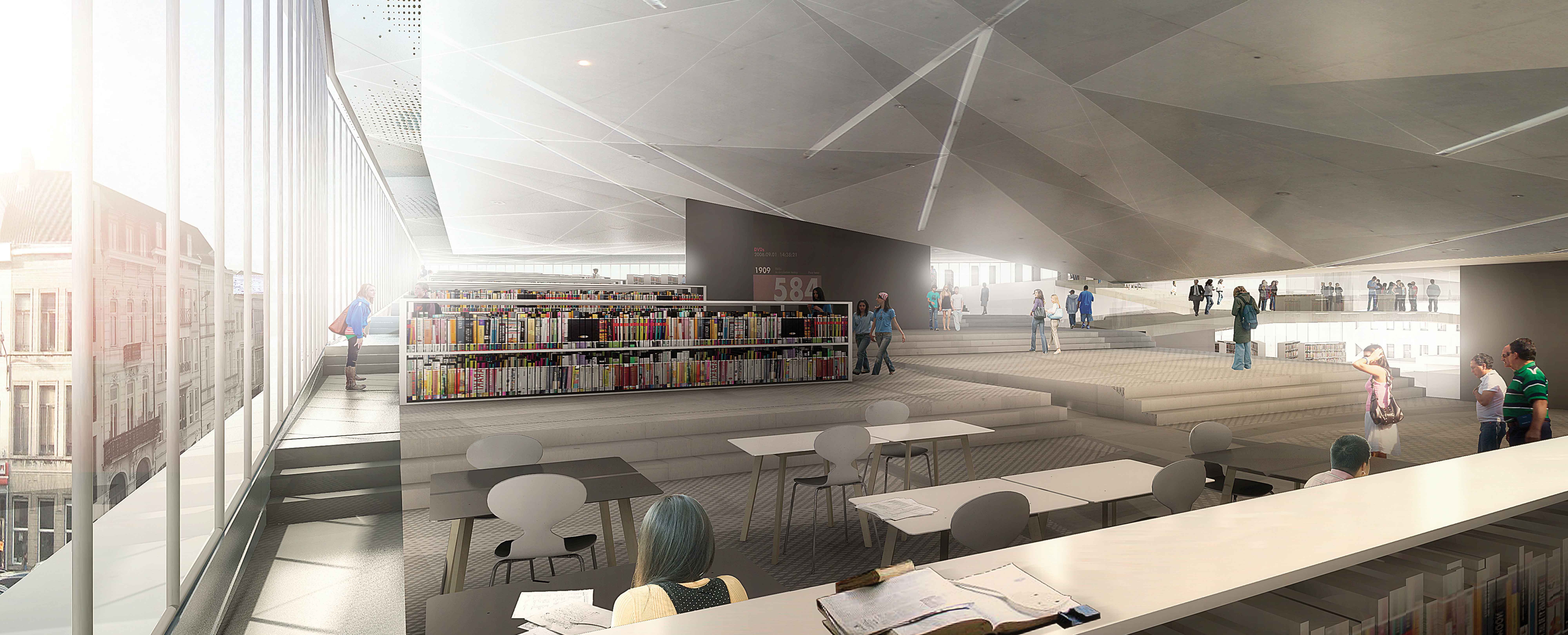 The City of Kortrijk sought to create a “Library of the Future” that would combine the functions of a traditional central library with a Life-Long Learning Center, and engage the city’s Music Center as an equal partner. The City named this agglomeration the “LLLibrary.” However, the City’s proposed site for the LLLibrary—the Conservatoriumplein—is currently an eddy, blocked from the cultural axis of the Casinoplein (a prominent public square) by the existing Music Center building.