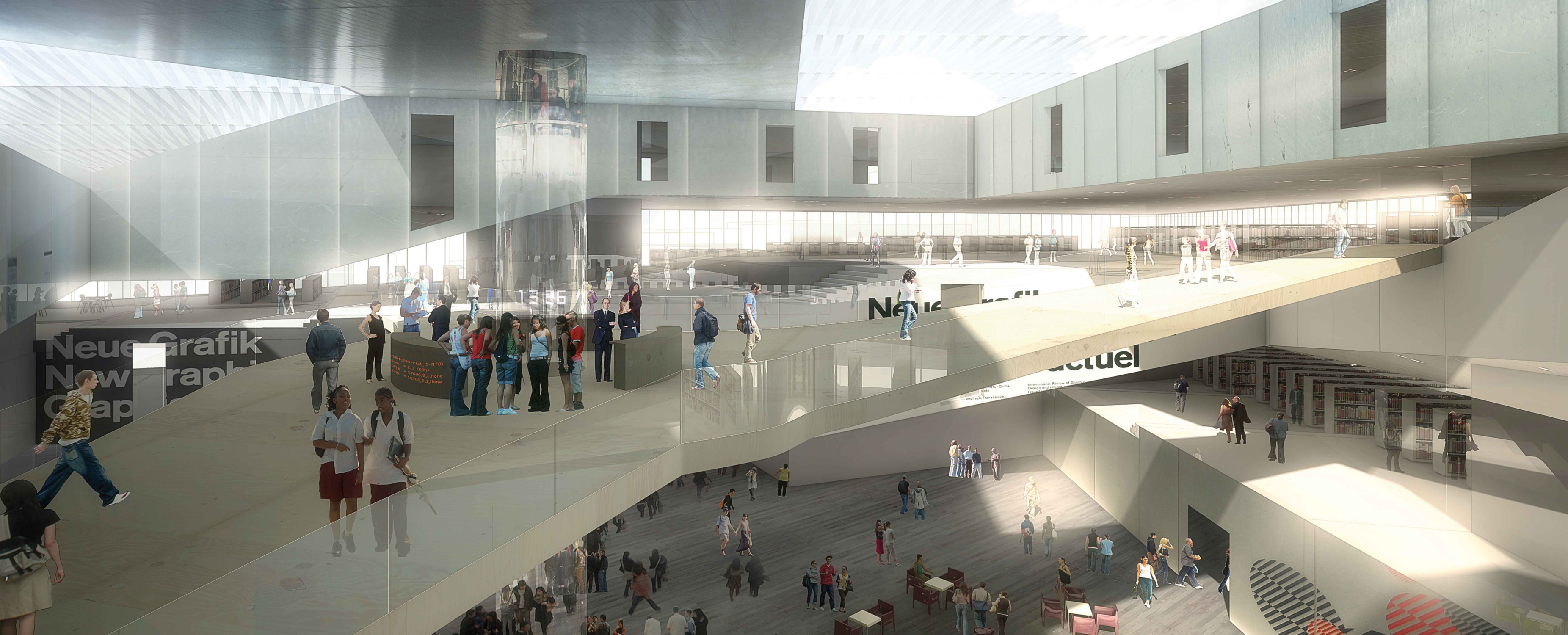 By incorporating the existing Music Center’s auditoria and pop hall into the new LLLibrary building, the scheme makes cost-effective use of recently renovated performance infrastructure.
