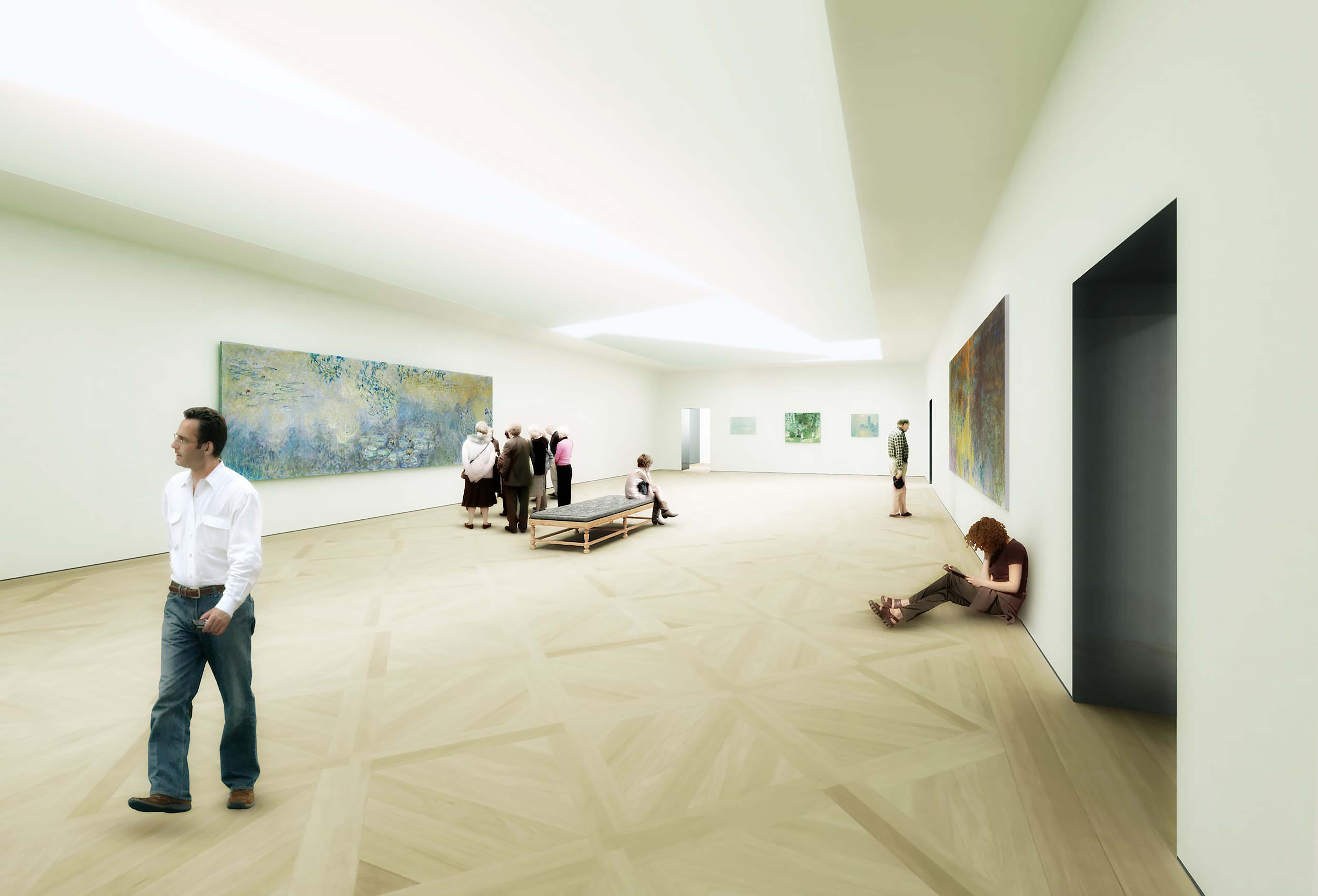 The galleries are sorted into an array of three distinct typologies—universal, classical, and lyric—and by daylight requirements, locating rooms that demand the most daylight on the higher floors. Instead of a linear, chronological presentation of art work, the typological array can reveal coherence, affinities, and tensions within a range of epochs and movements.