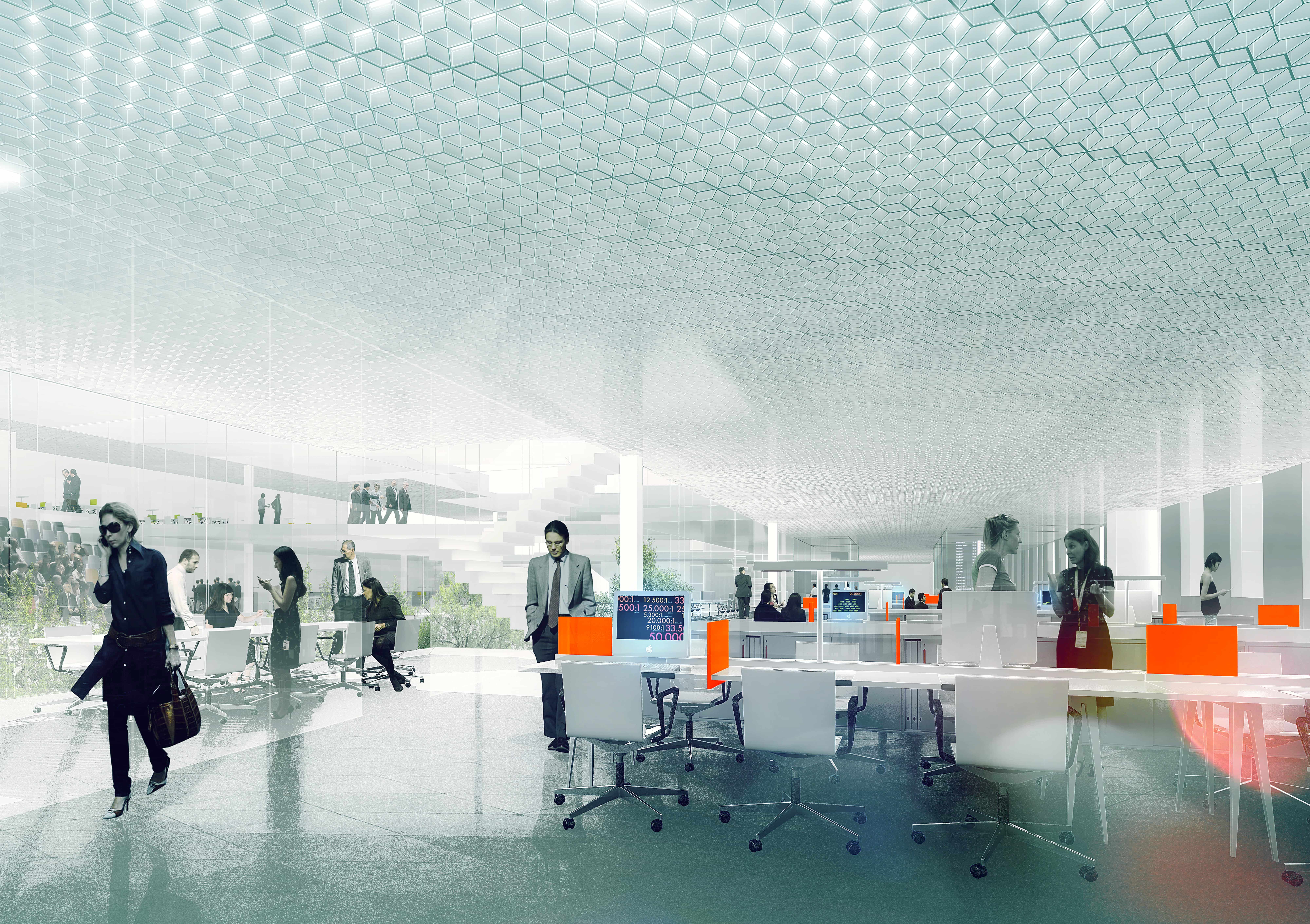 8,000 m² of office space is dimensioned to accommodate different and evolving work styles and allows for proximity, interconnectedness, and future company expansion.