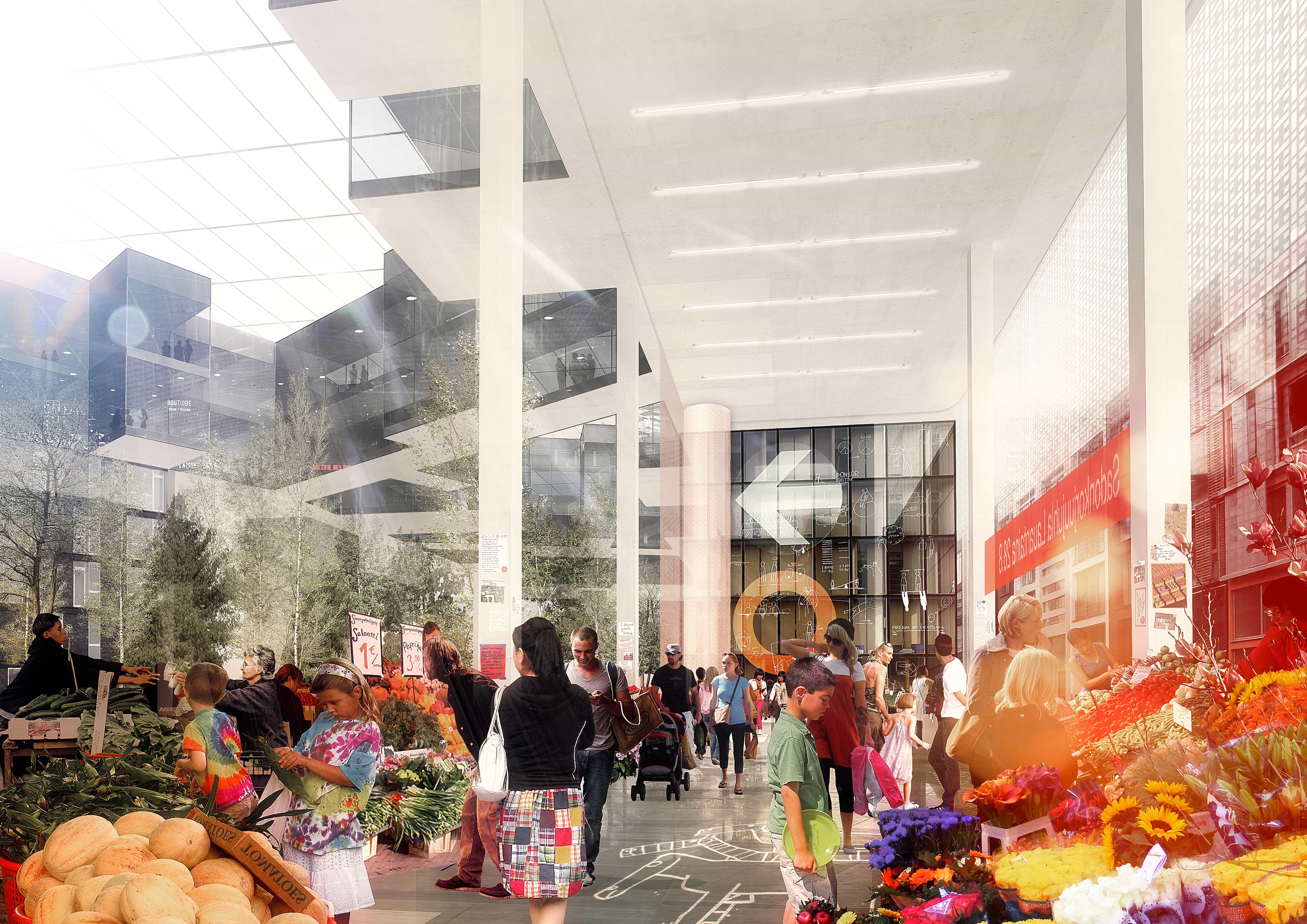 Should all the Urban Infill not be initially developed, interim public functions—or Urban Rooms—can anticipate amenities planned for Helsinki’s new development areas, such as a farmer’s market.