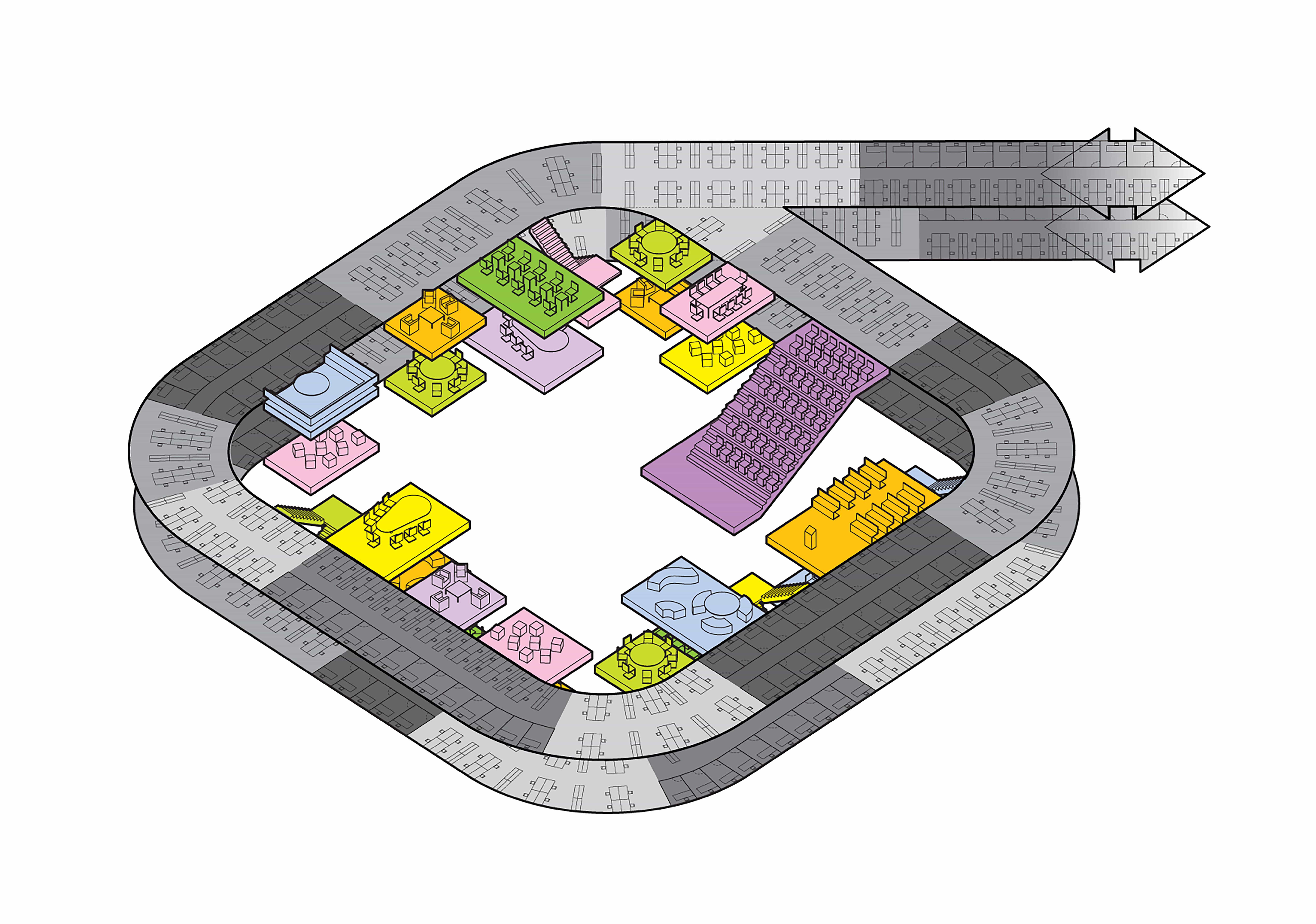 Cohesion within the Headquarters is fostered by concentrating collective spaces and circulation …