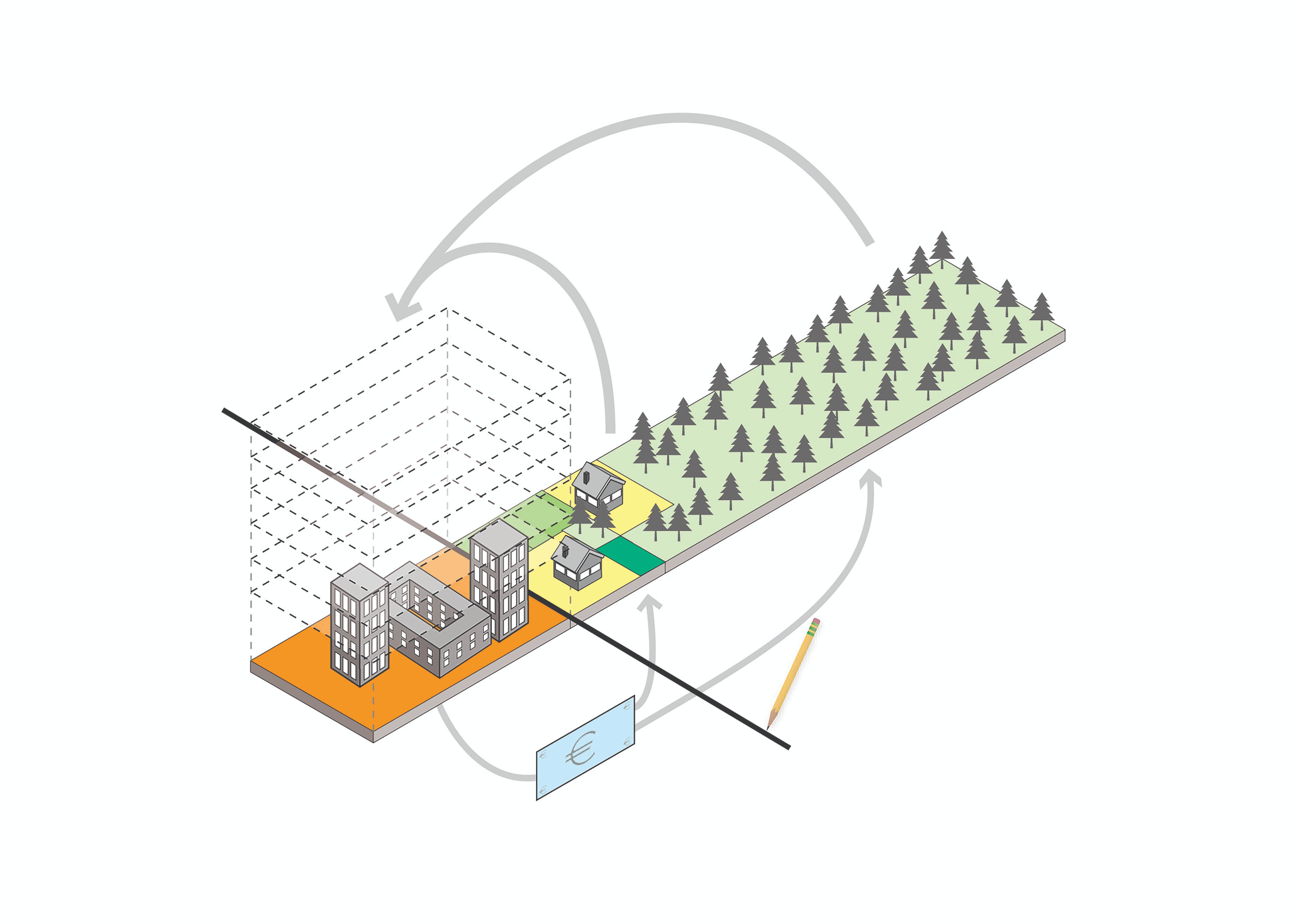 Working in concert with Growth Boundaries, the Transfer of Development Rights establishes sender/receiver relationships for exchanging development rights between areas with ecosystem service potential and areas where urban growth is desired.