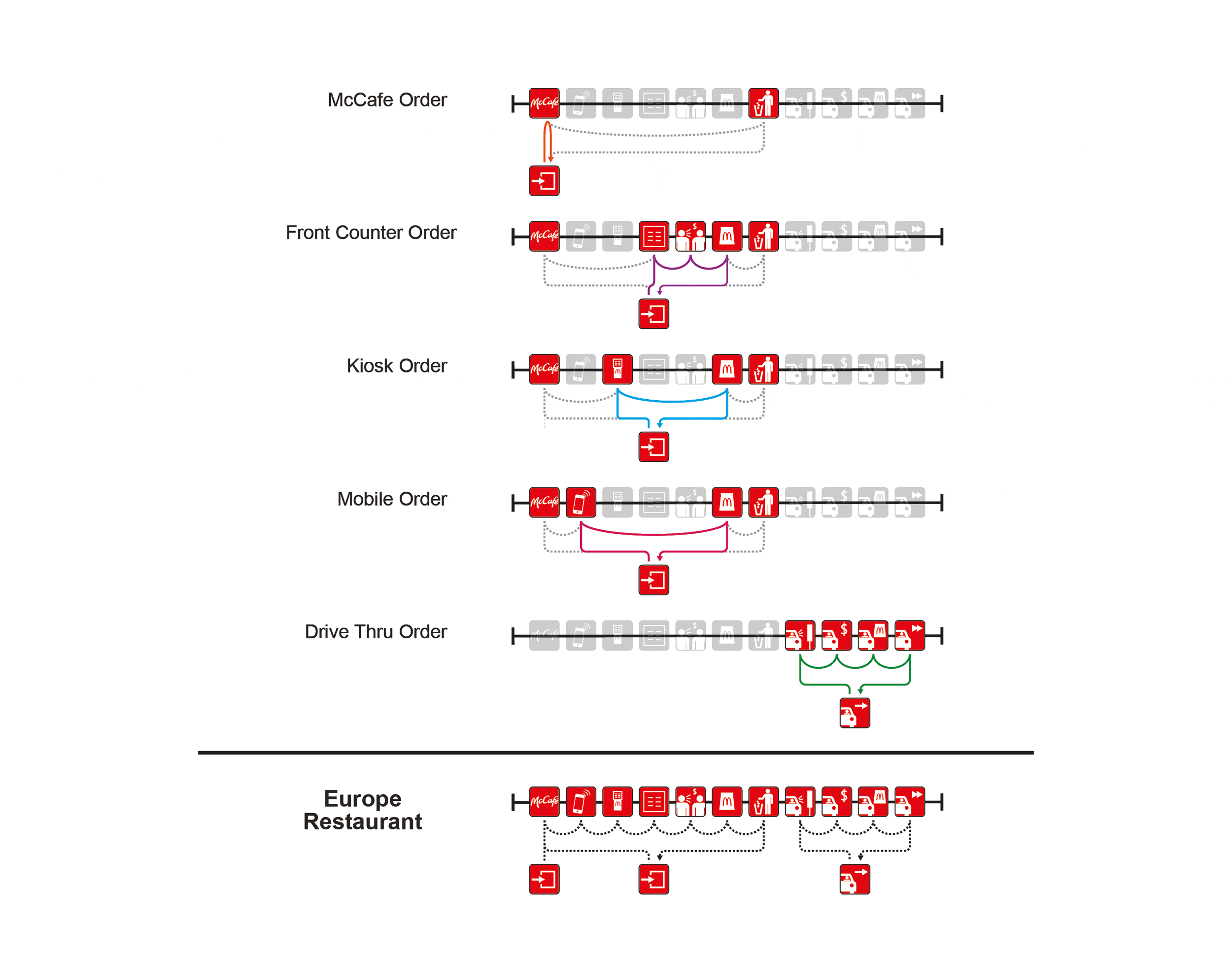 Each market determines the necessary customer interaction pathways and hence the initial sequence in which the Coachworks are laid out.