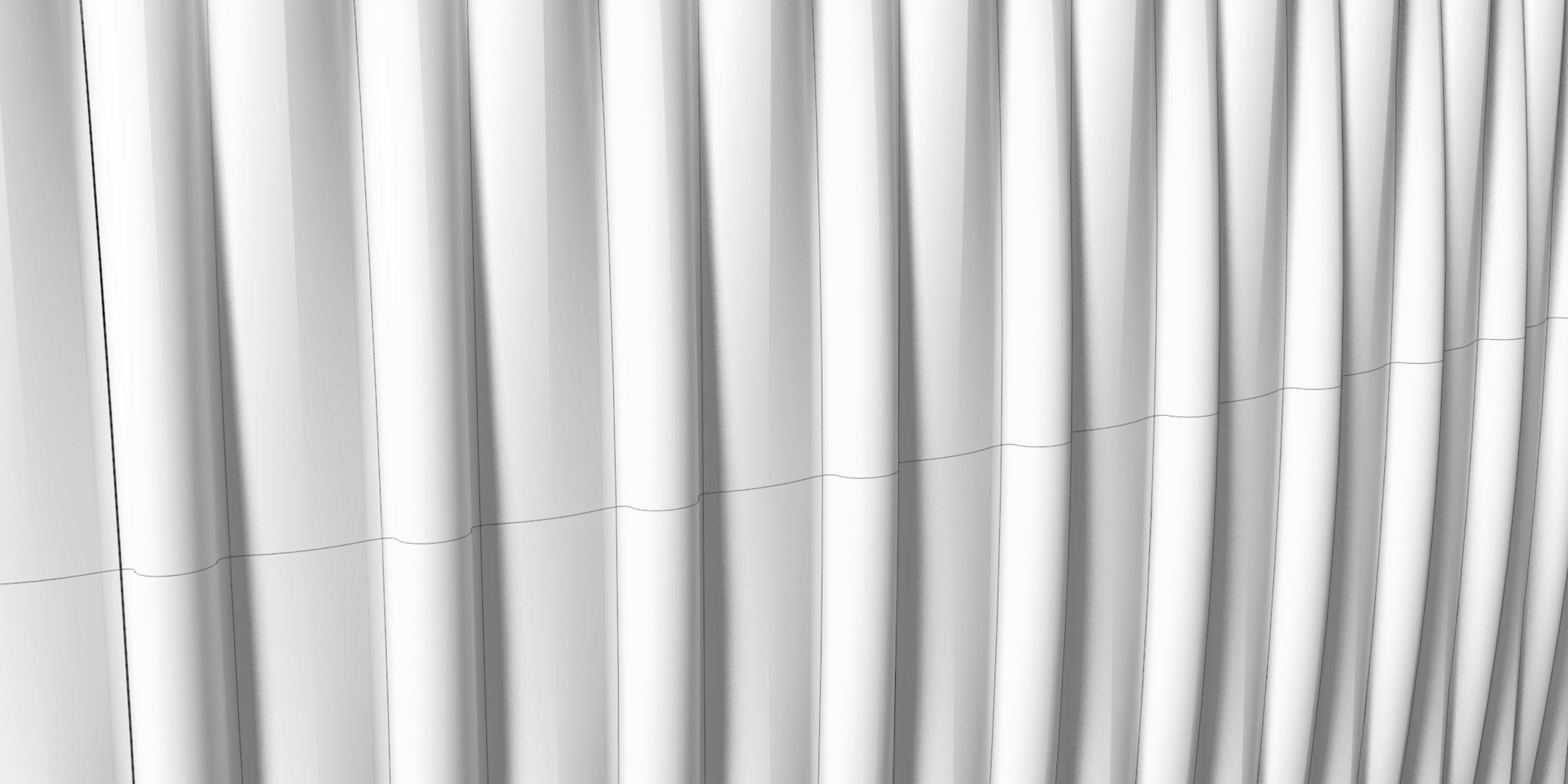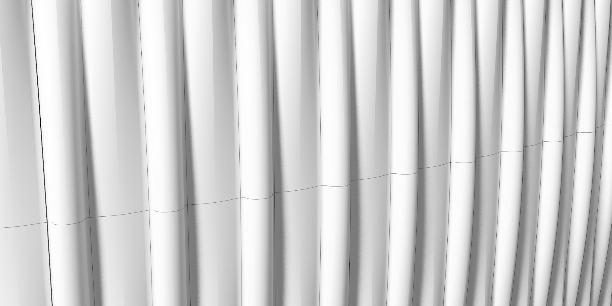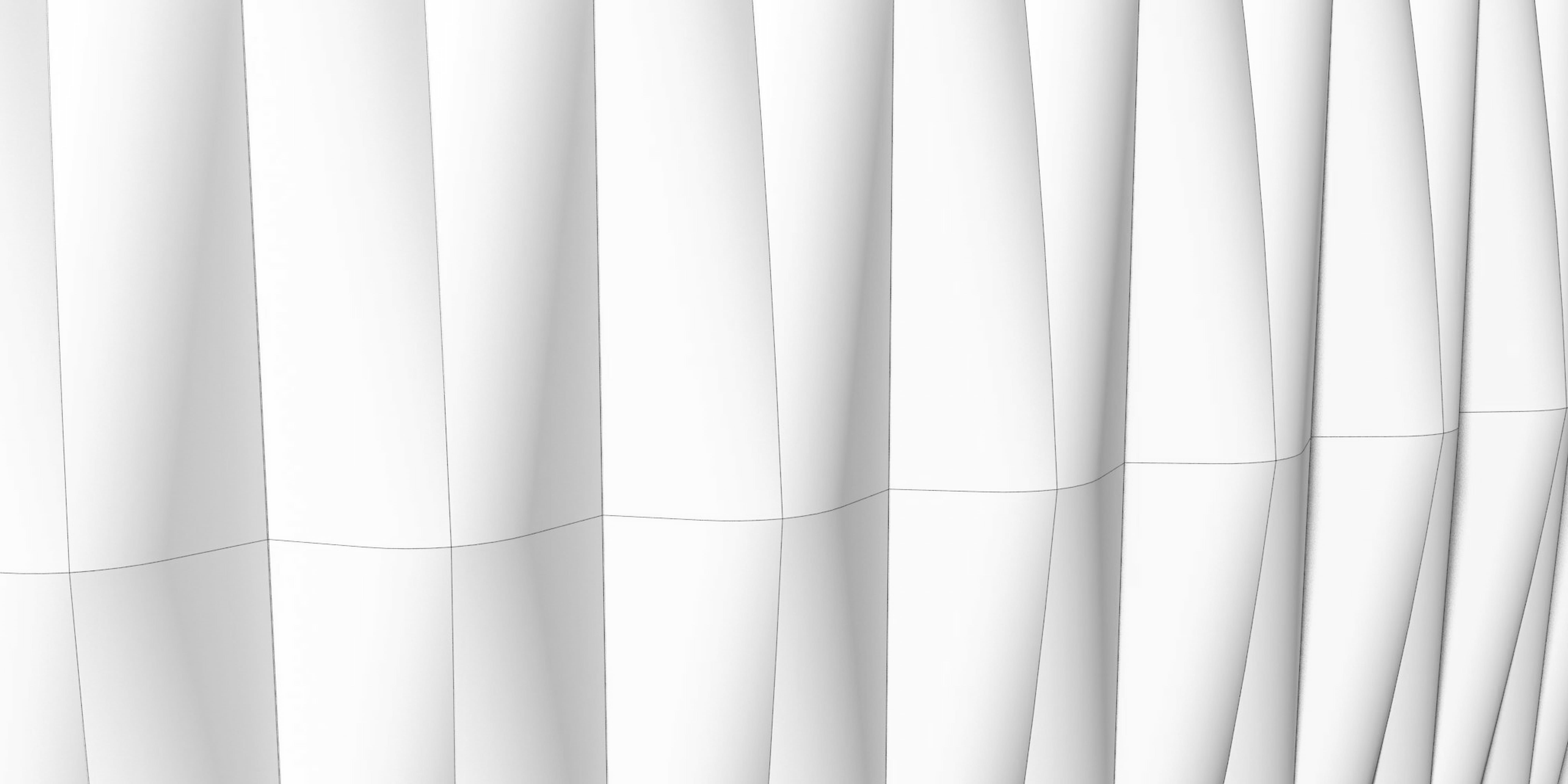 When the cylinder radii of the panel folds are larger than R1000 mm, the appearance of smooth, curved, vertical transitions from top panels to bottom panels—resembling double-curved surfaces—can be achieved while maintaining single, uniform curvature for all panels.