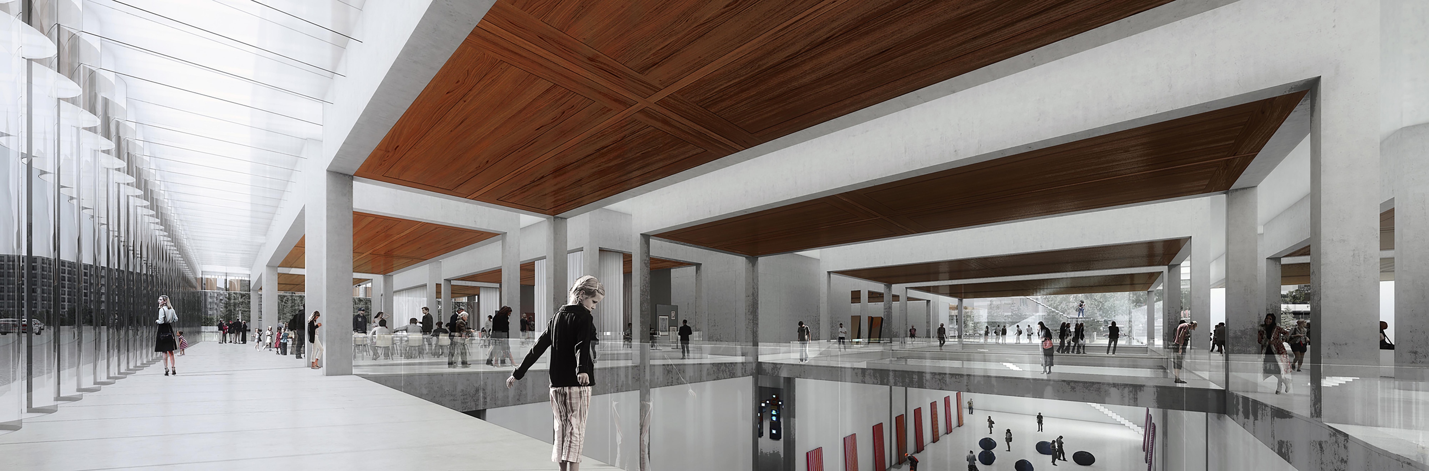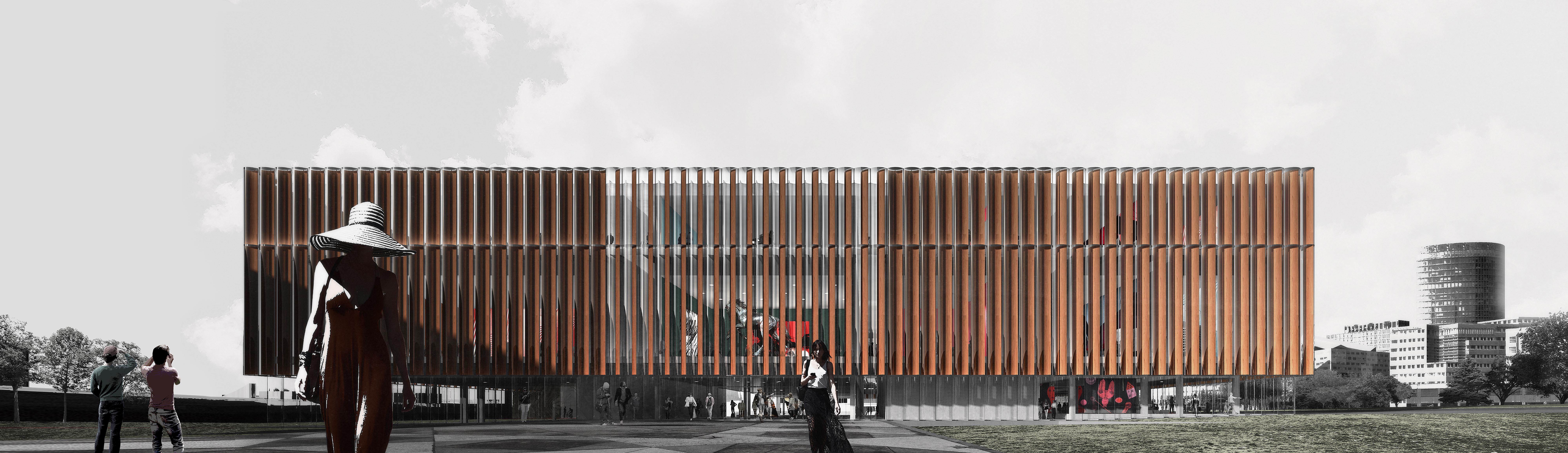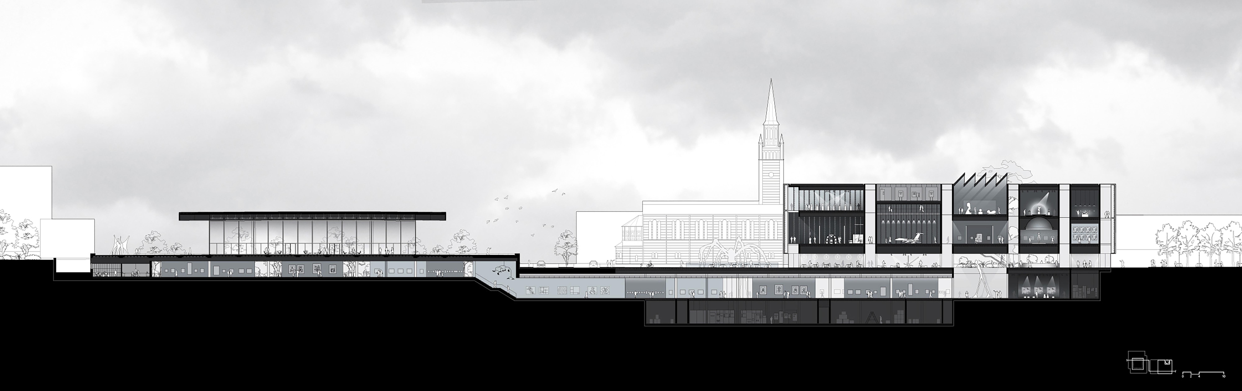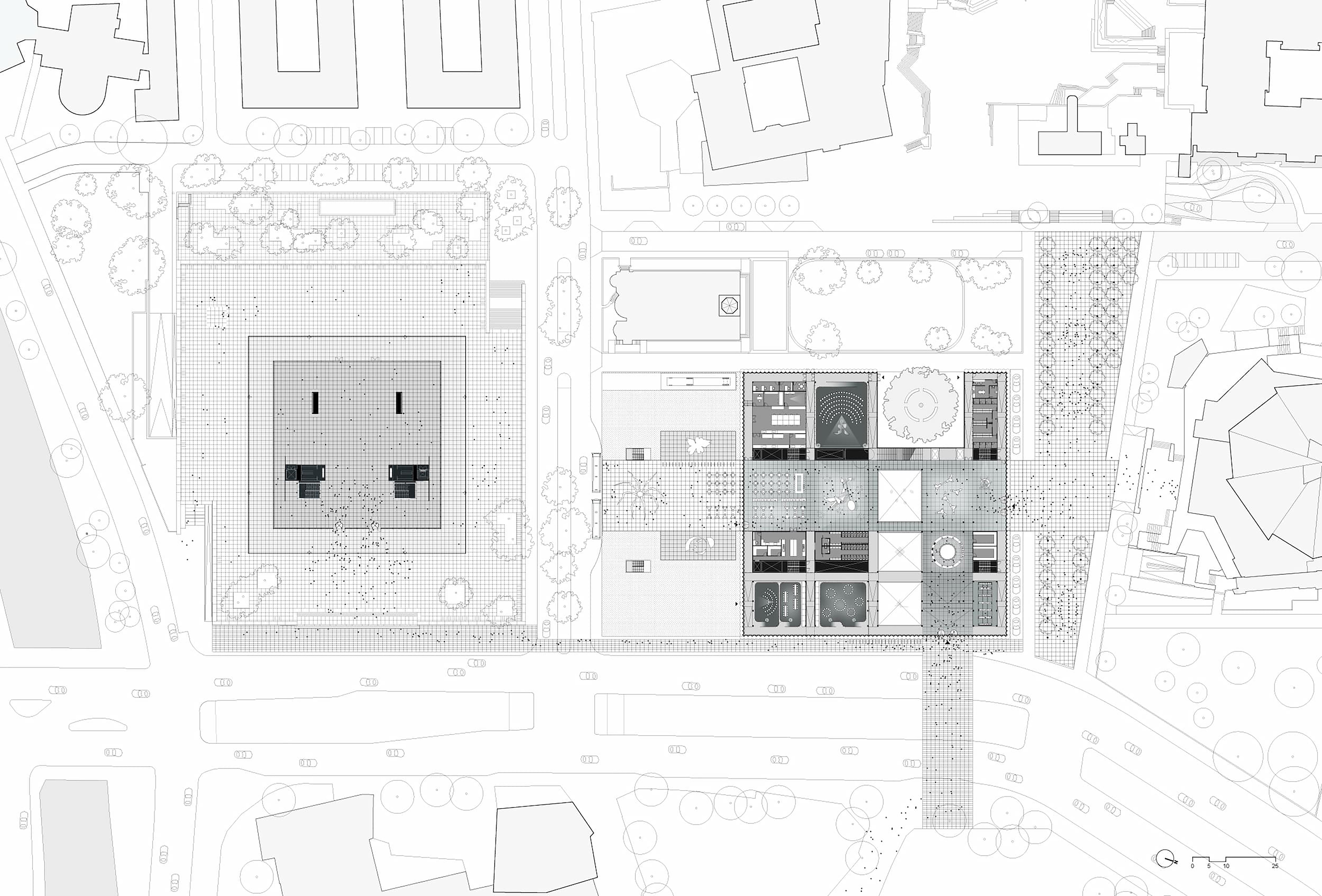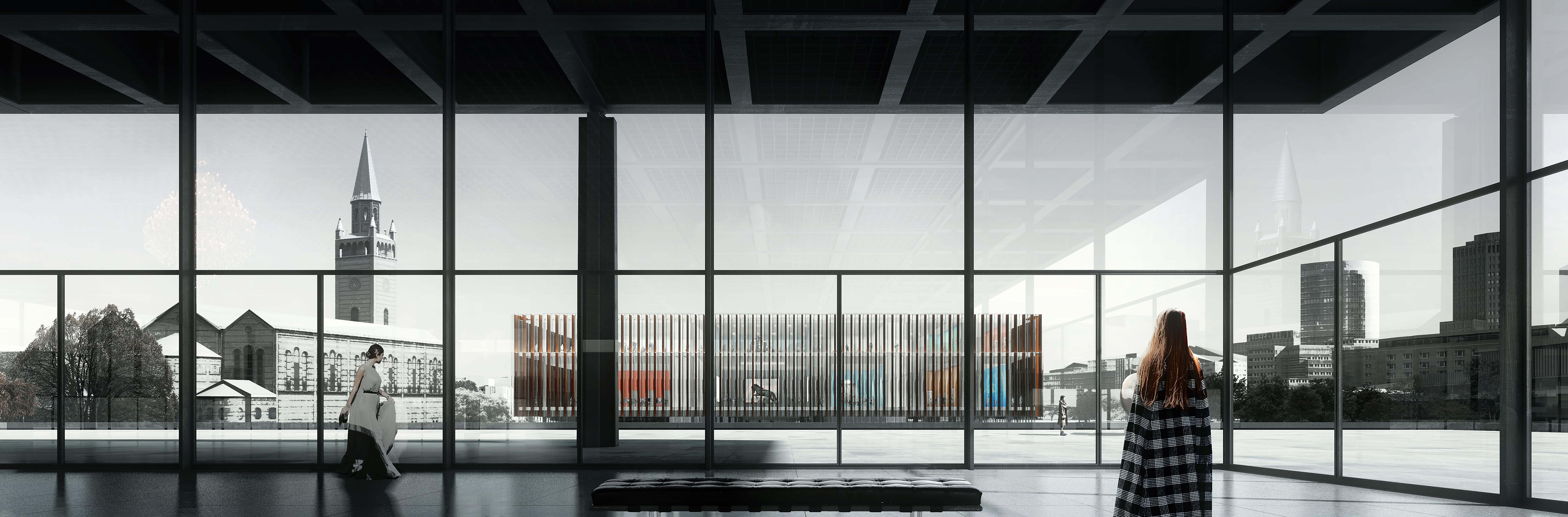 PROGRAM Museum forming a curatorial unity with the Mies van der Rohe-designed Neue Nationalgalerie, and consolidating the Nationalgalerie’s holdings of 20ᵗʰ century art, the Marx, Pietzsch, and Marzona Collections, and works from the Museum of Prints & Drawings and the Art Library’s museum collection; and (A-Z) administration, art storage, café, education/art appreciation spaces, exhibition spaces, media/event space, restaurant, restoration areas, and shop