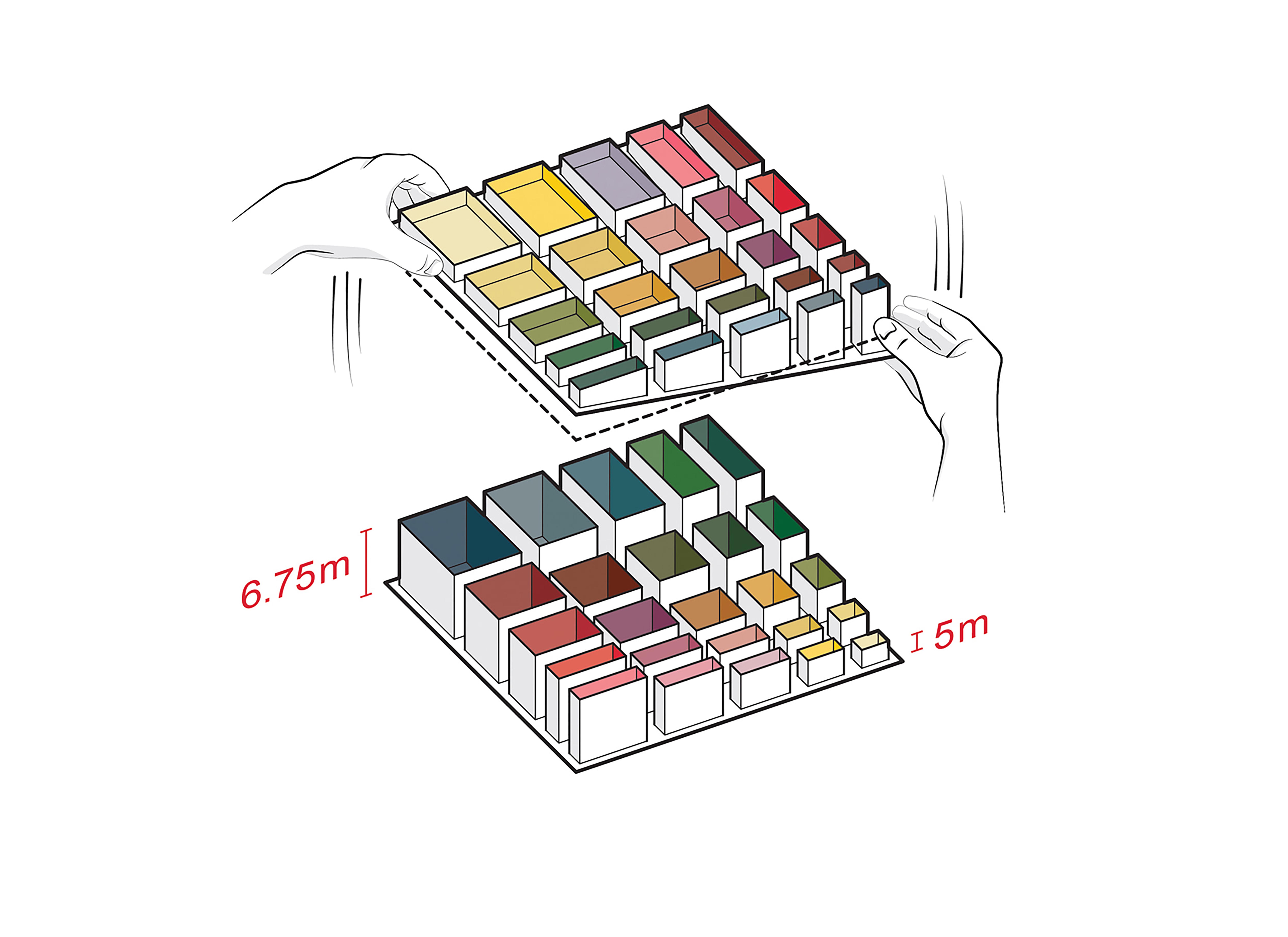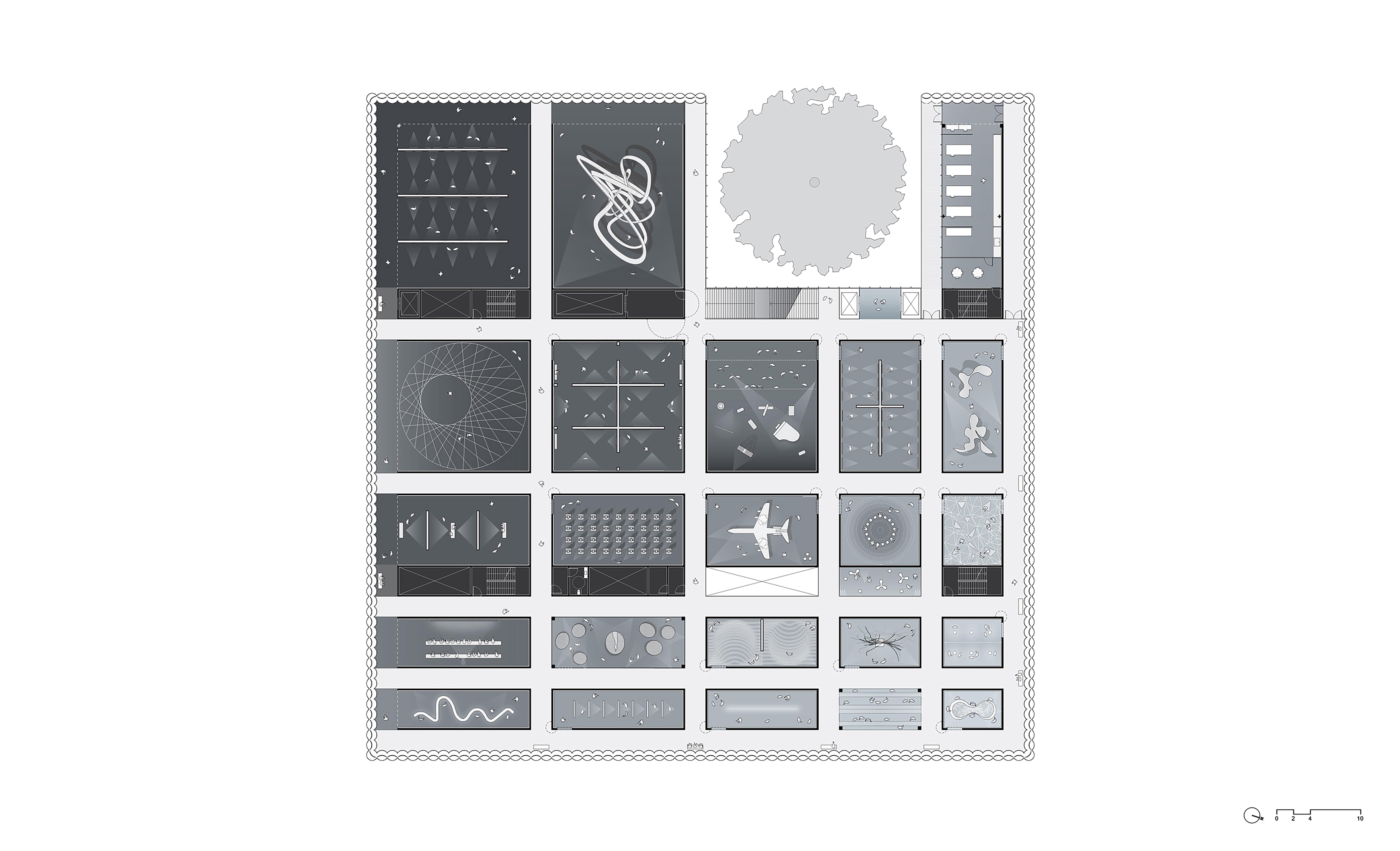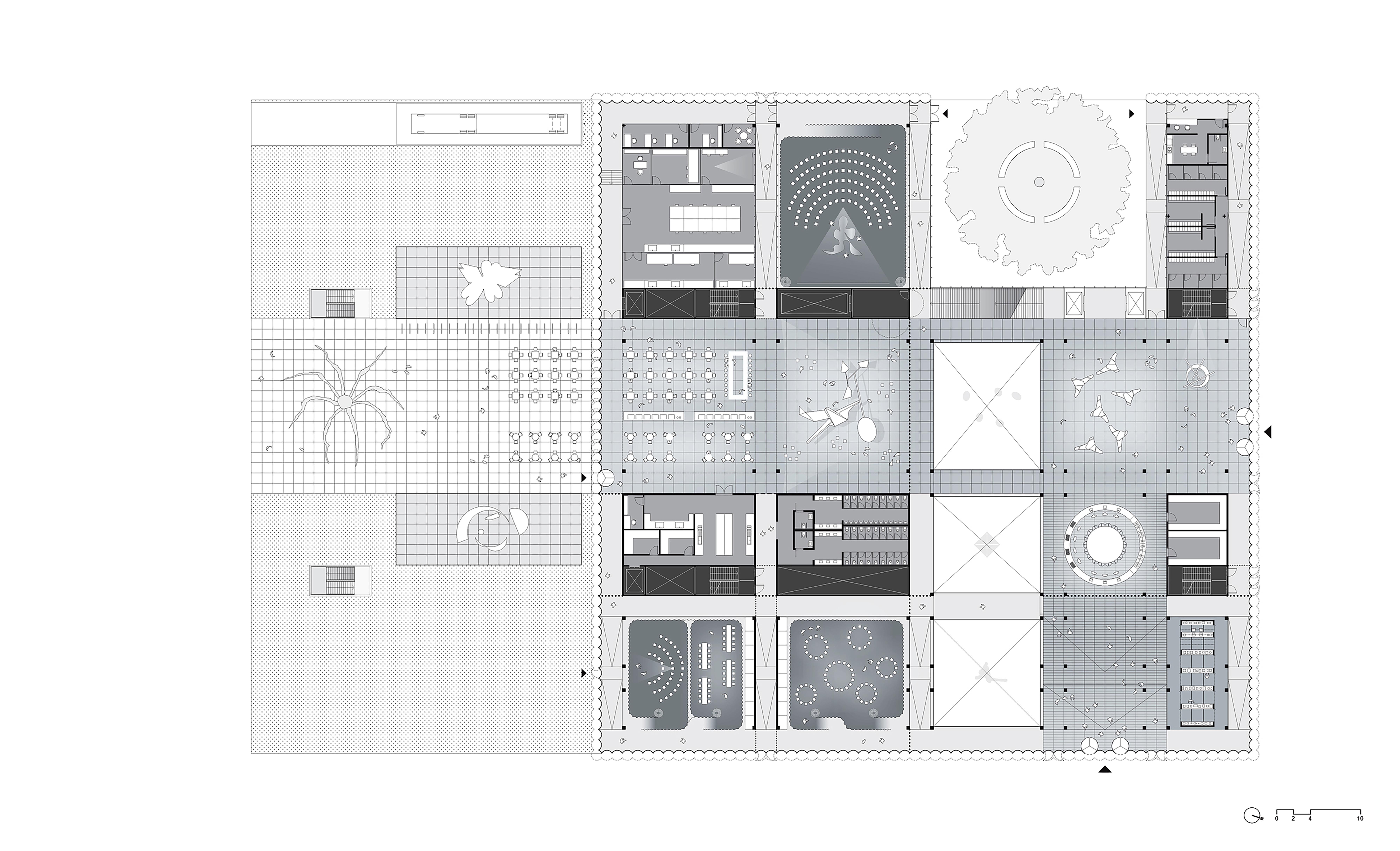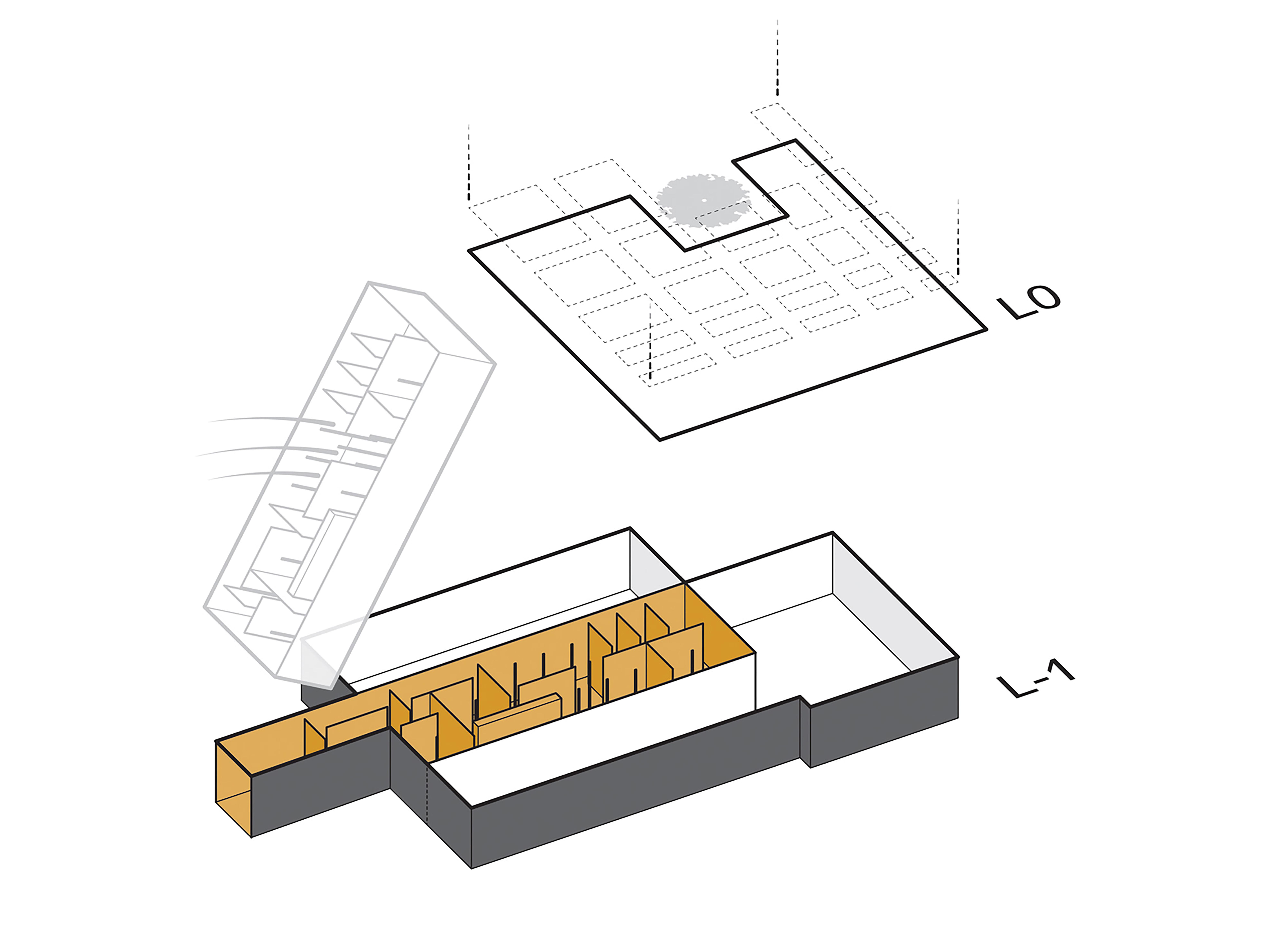 To fit The Museum’s program requirements within the delineated square, the floorplate is doubled. While both gallery floors follow the same gridded gradation, the characters of galleries are unique on each floor.