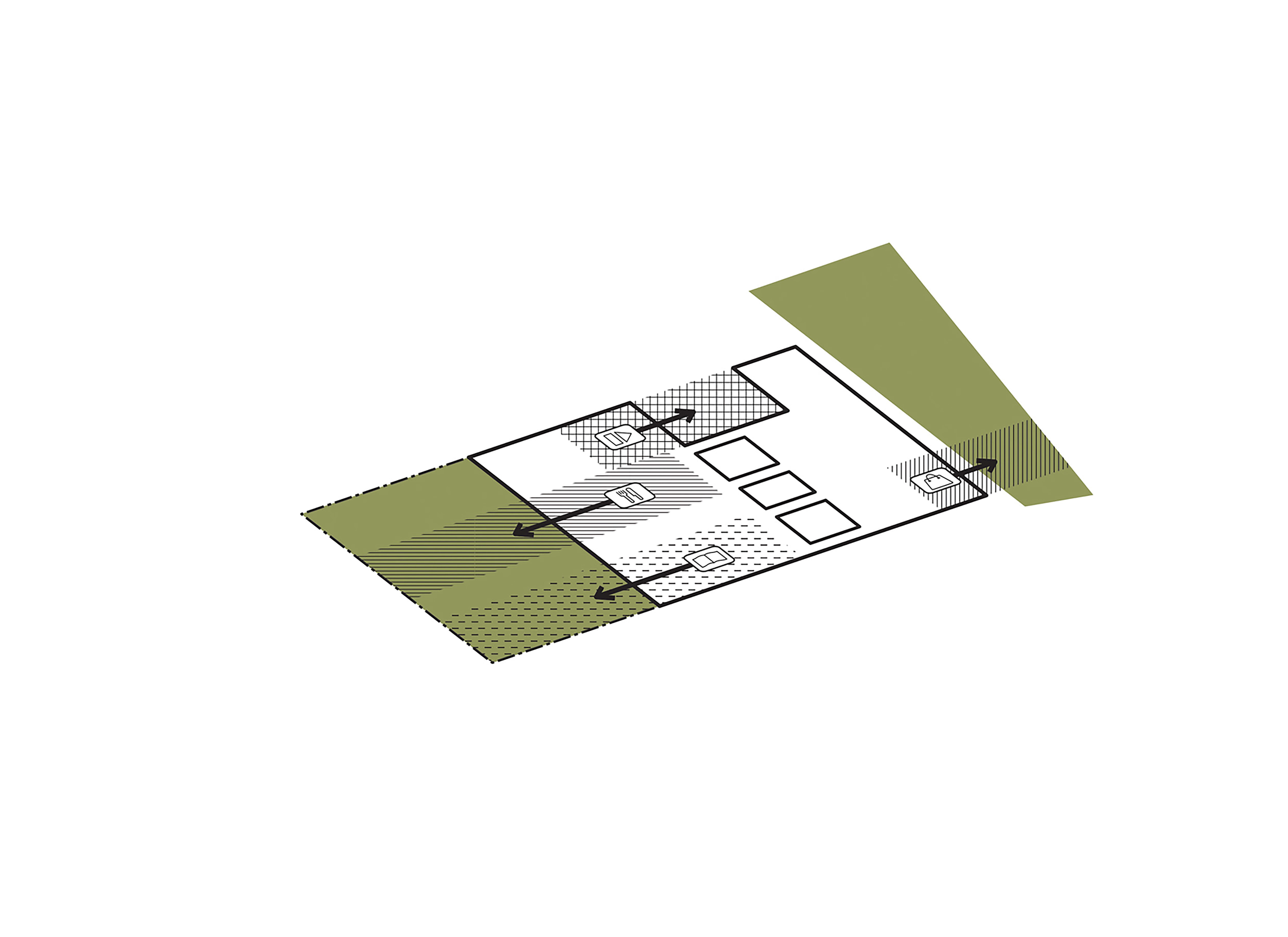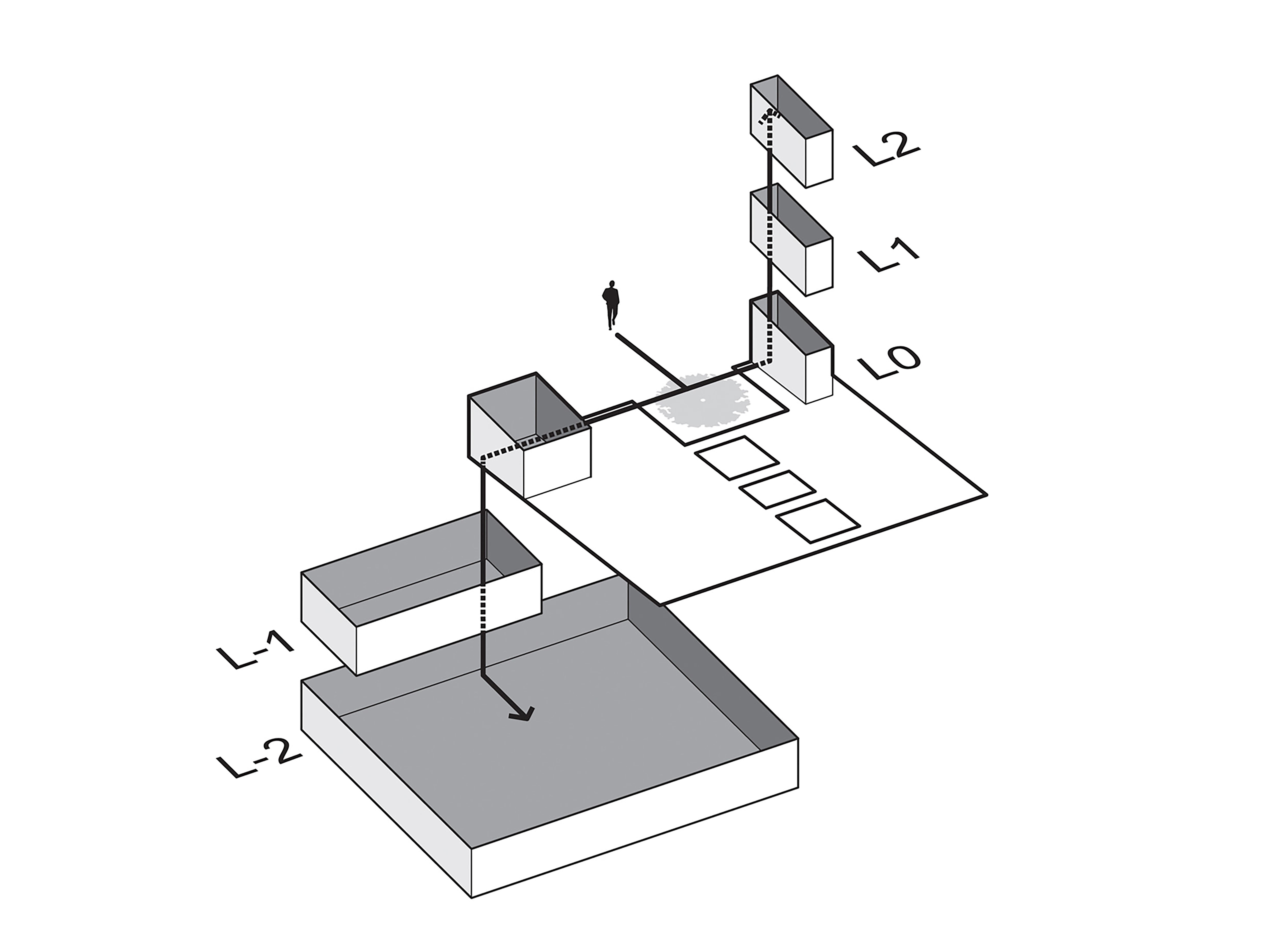 … ii) the gradation is pushed towards the southwest to offer optional side daylight to the galleries along the southern and western perimeters (similar to the basement galleries of the Neue Nationalgalerie, which reach west to the façade of its sculpture garden); and …