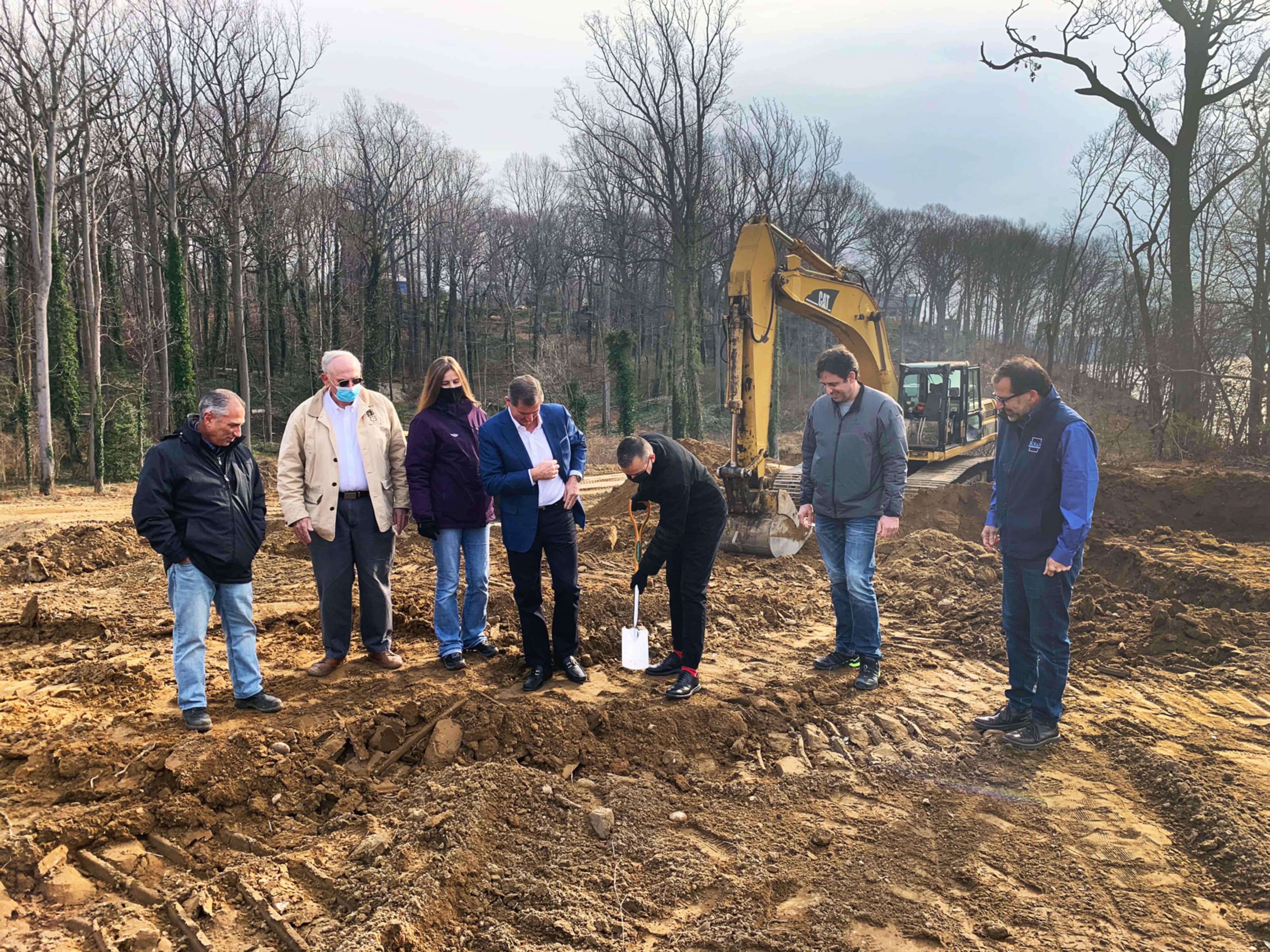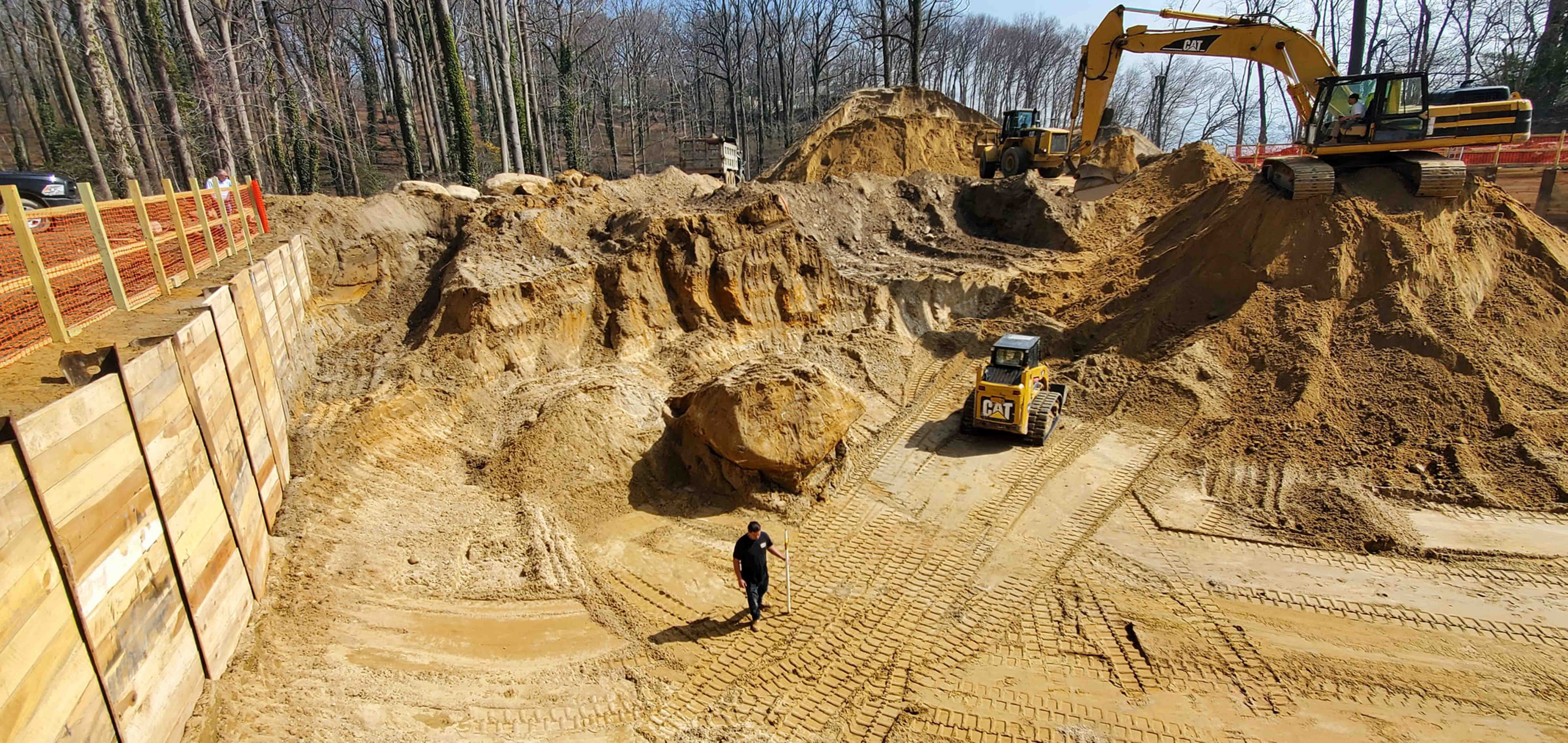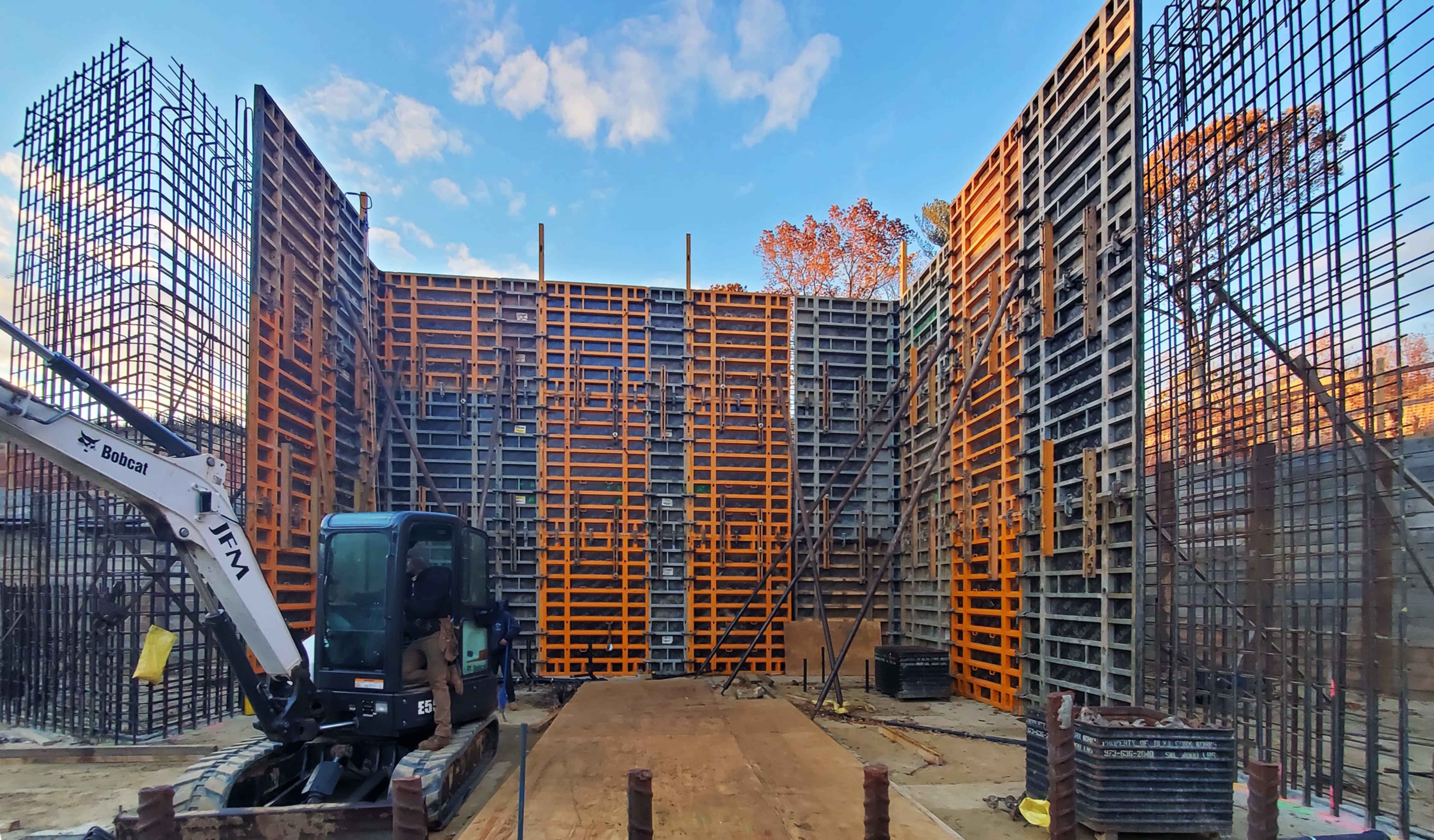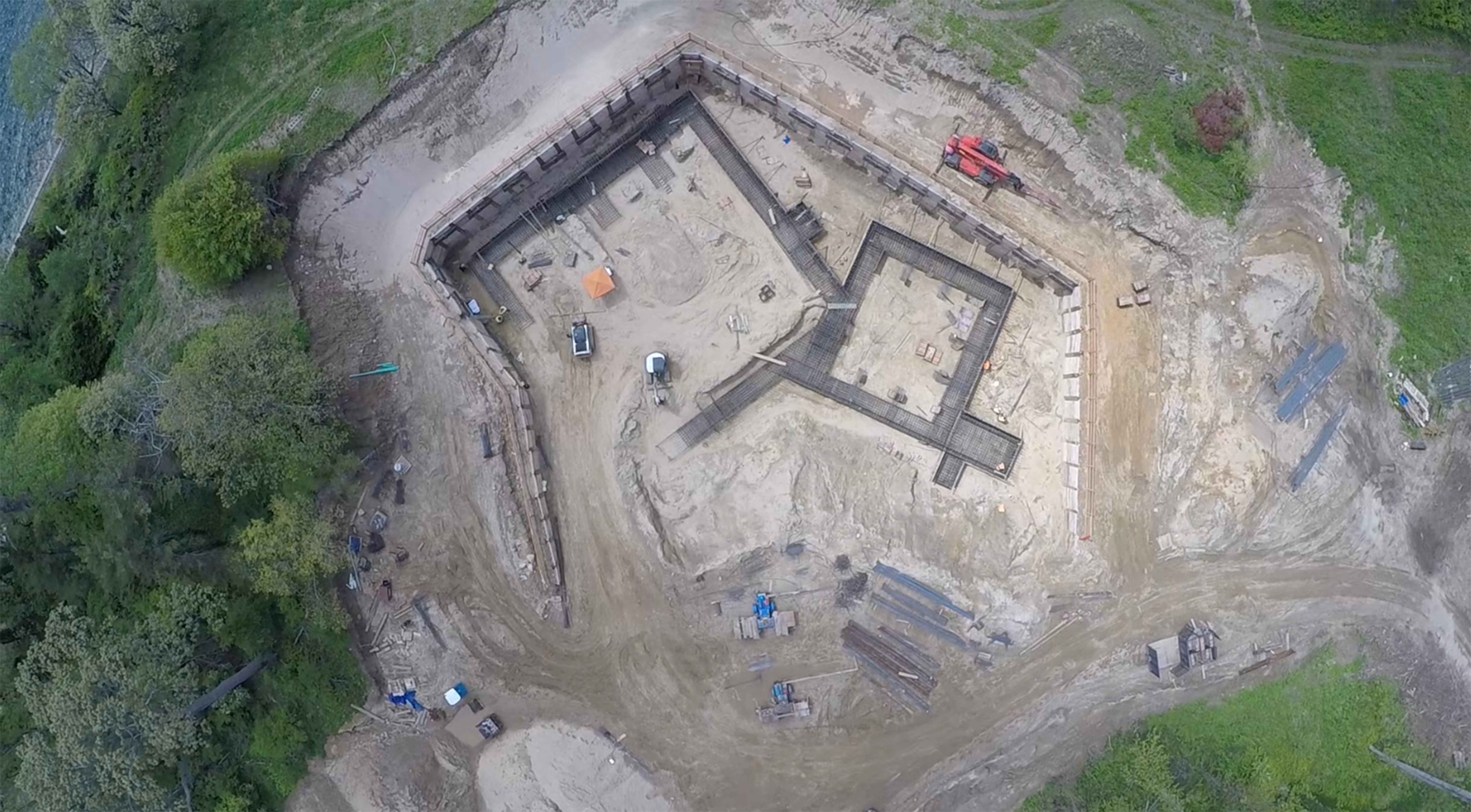 The primary steel structure is complete on the Event Space and nearly complete on the first home, March 2023