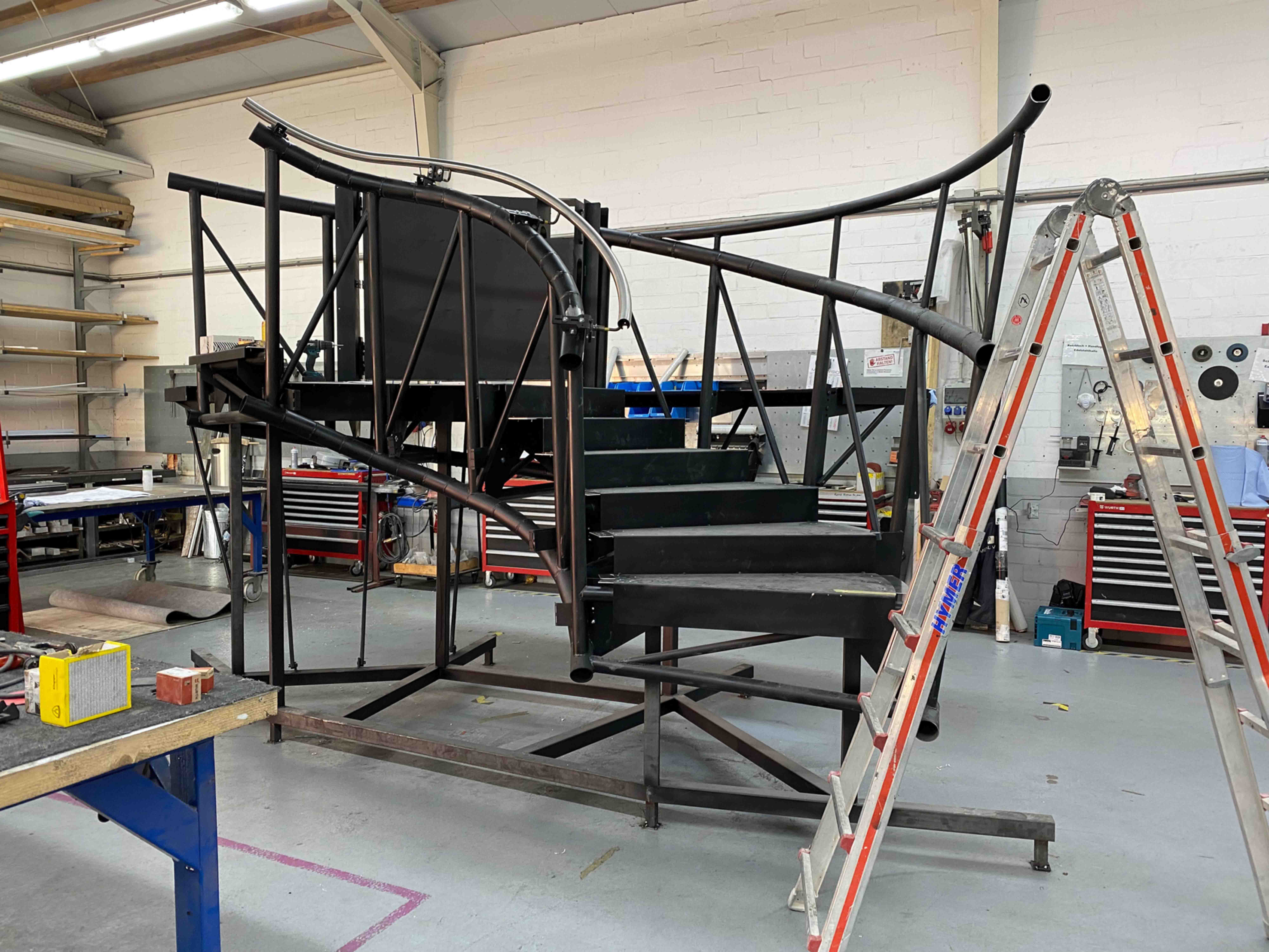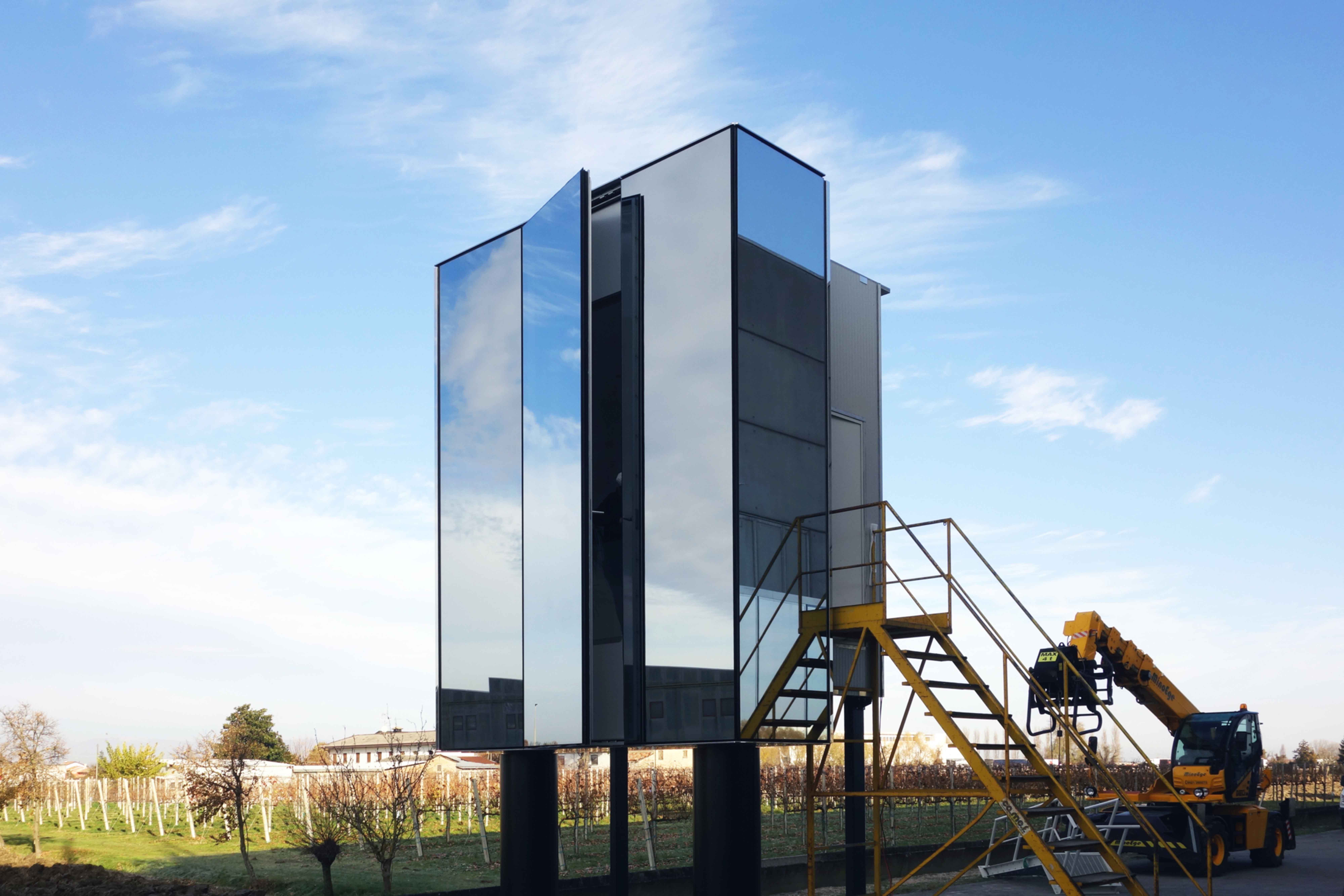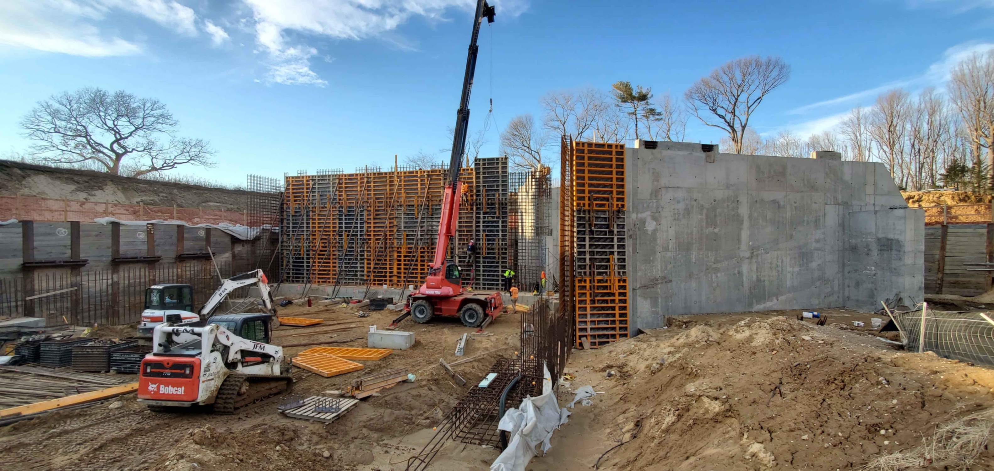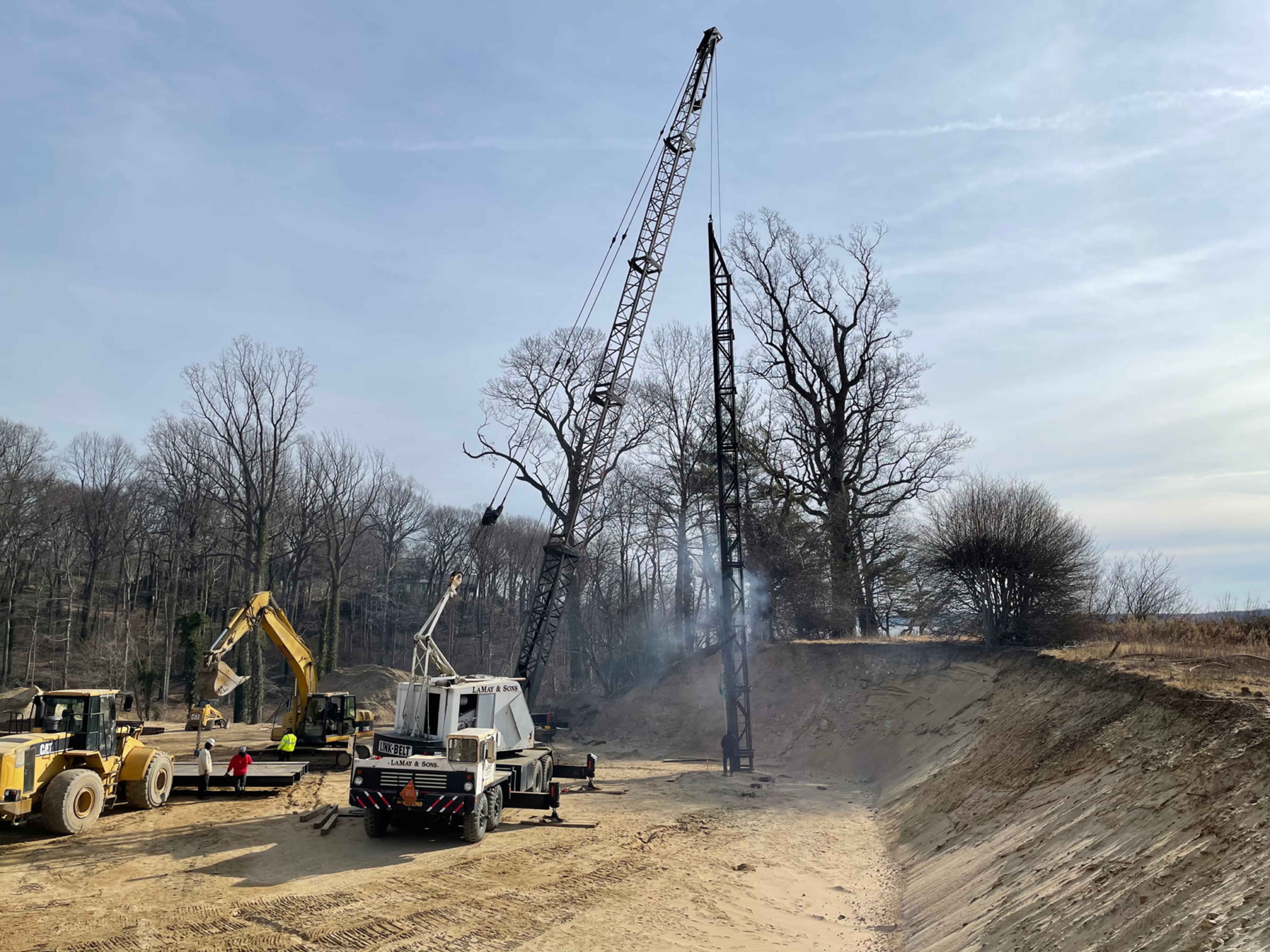 The primary steel structure is complete on the Event Space and nearly complete on the first home, March 2023
