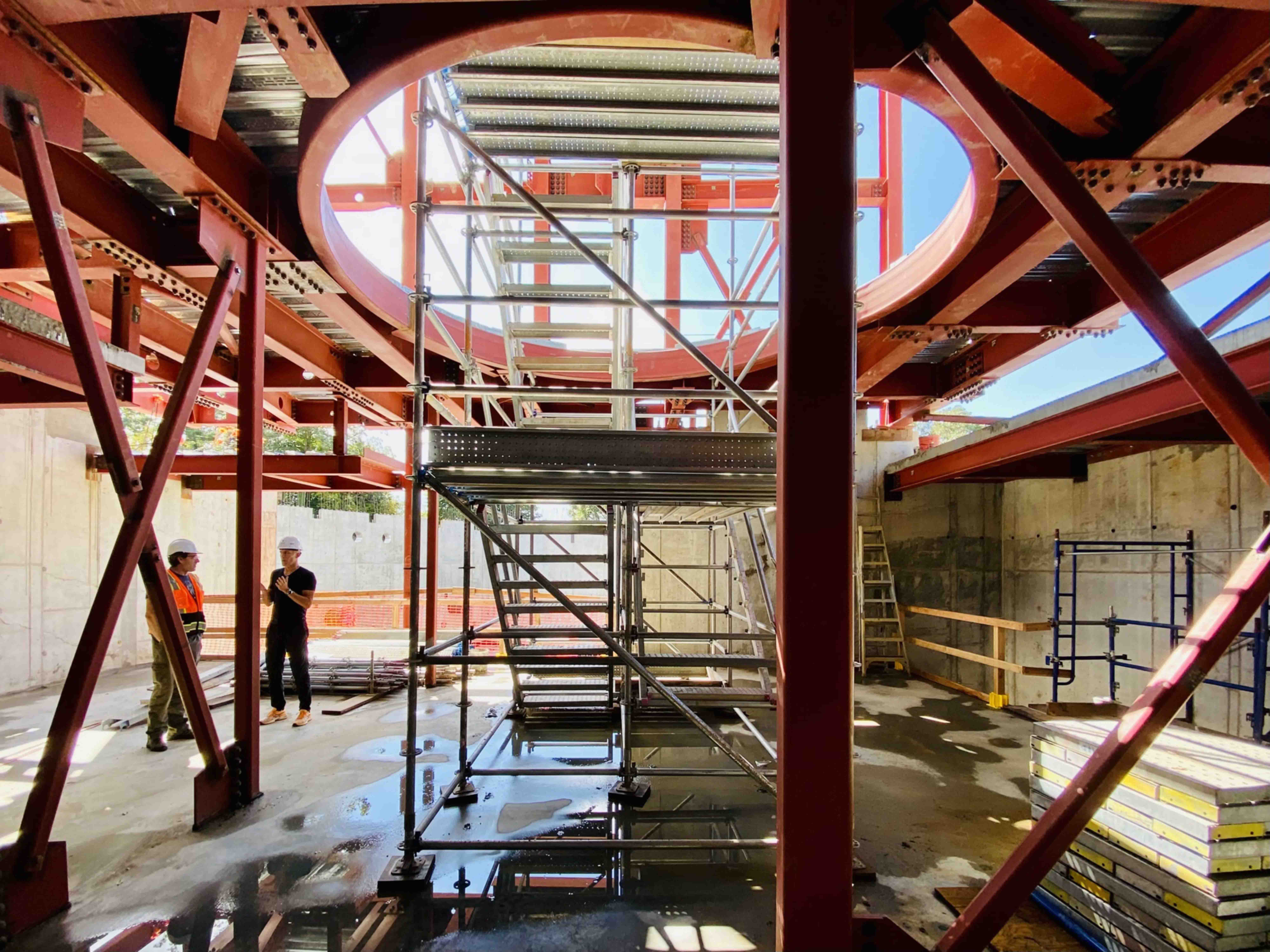Relating the scale of the interior spaces and the ring gallery that connects the entire building, April 2023