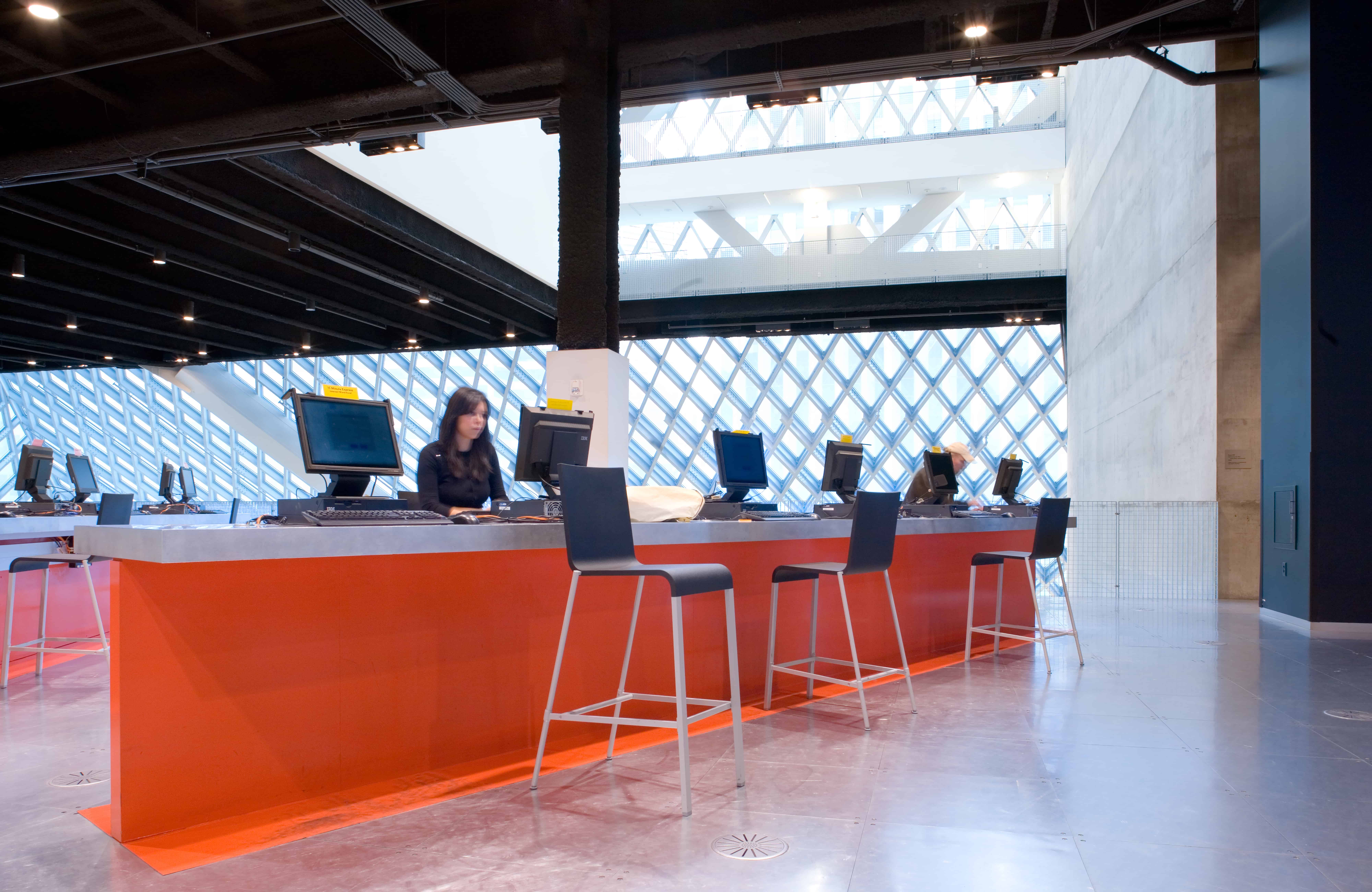 The spaces in between the platforms function as trading floors where librarians inform and stimulate, where the interface between the different platforms is organized—spaces for work, interaction, and play.
