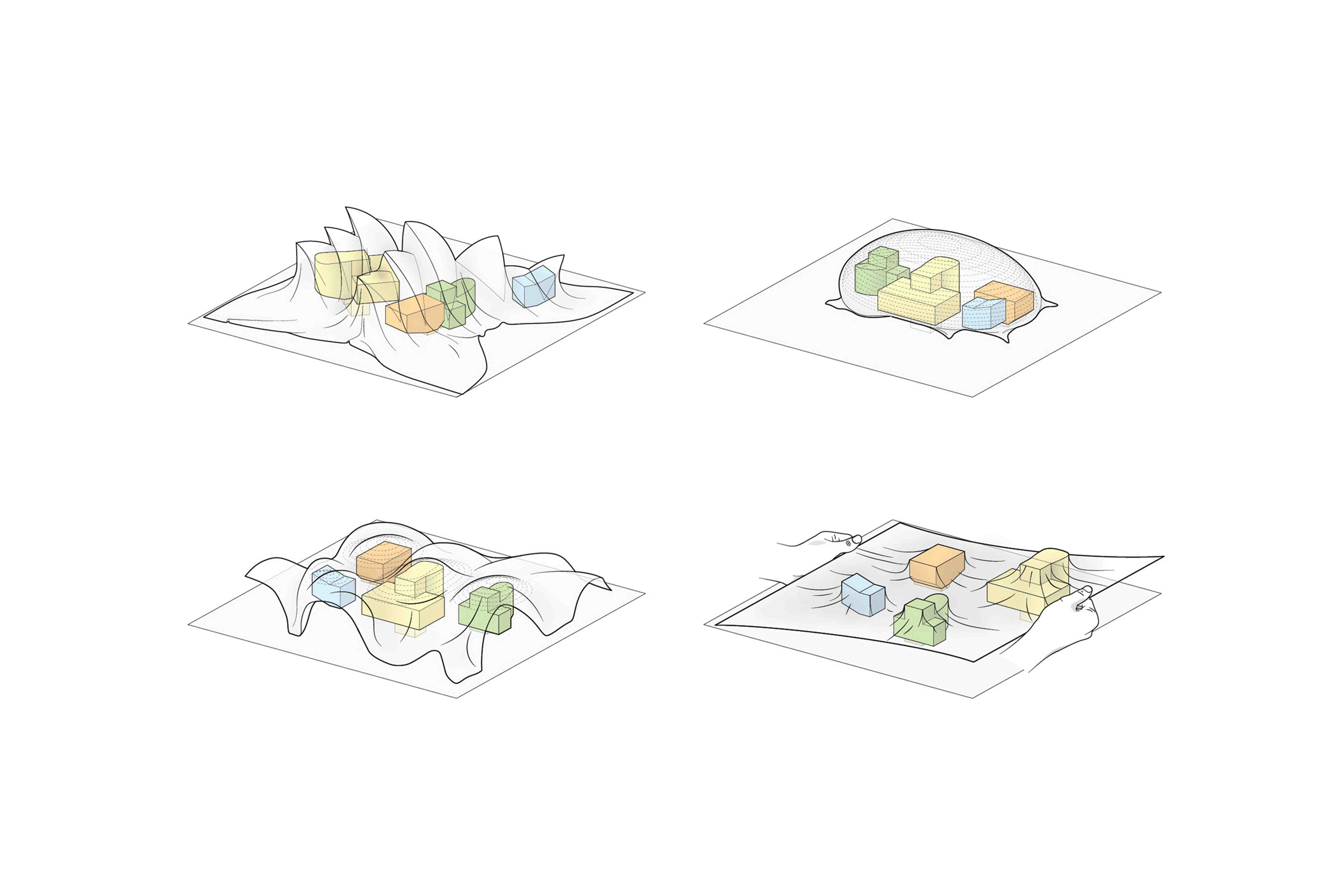 By contrast, the Sydney Opera House’s identity is created simplistically by the addition of a gregarious roof form of ten massive ‘sails’ that crown the venues like a ‘Blanket of Iconography.’