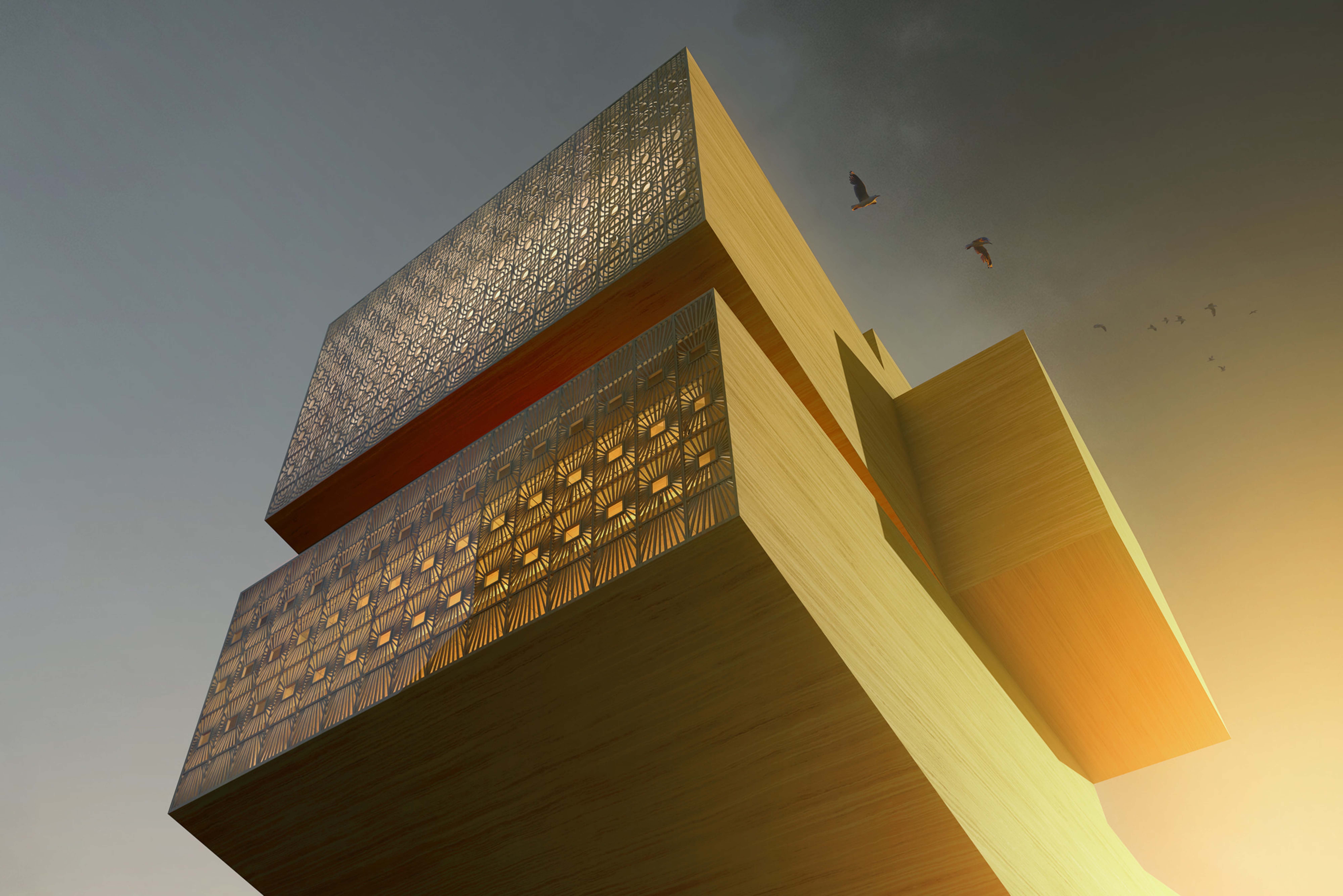 Wrapped in Chinese Golden Travertine, Shenzhen Opera House is reminiscent of a Shoushan stone seal, …