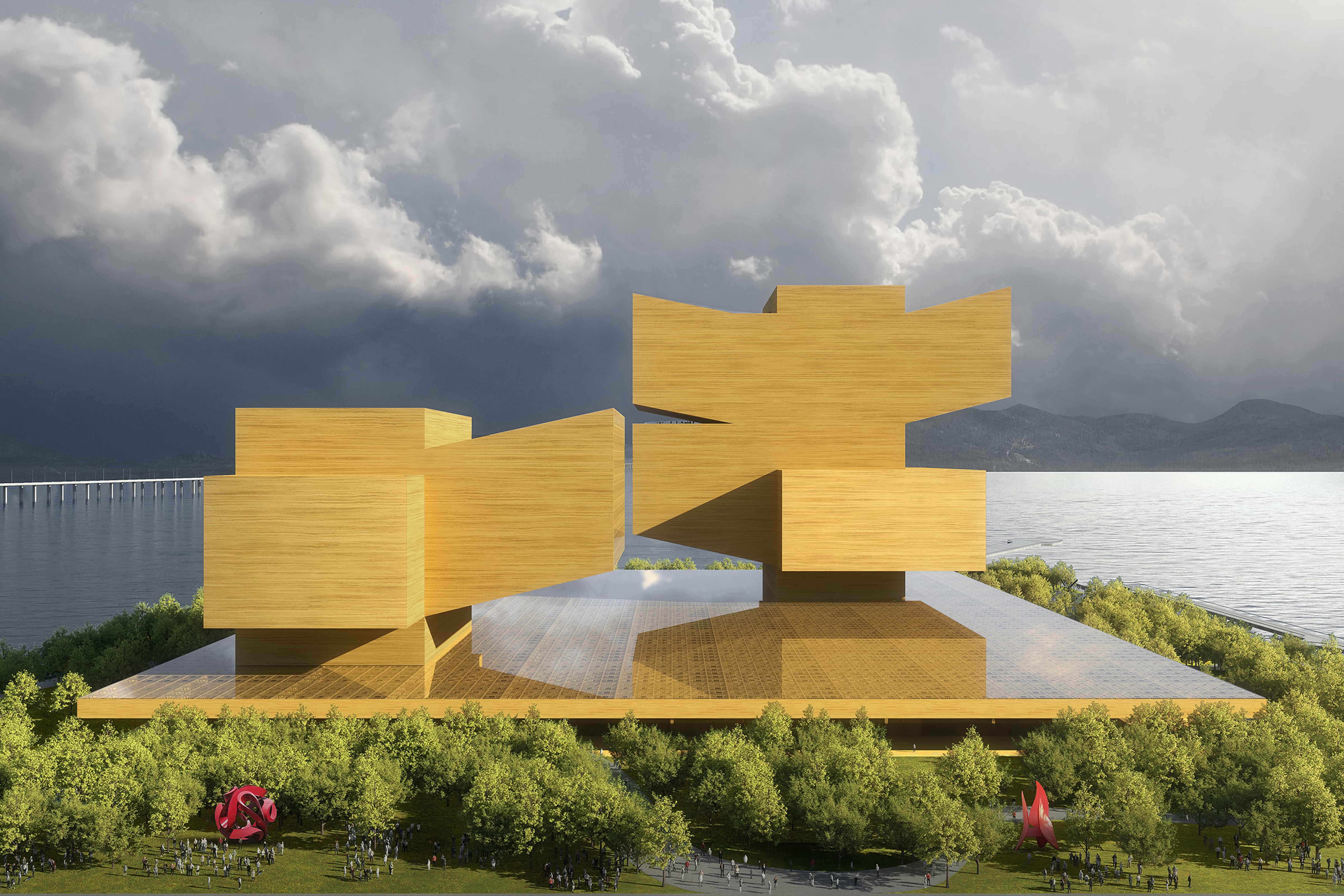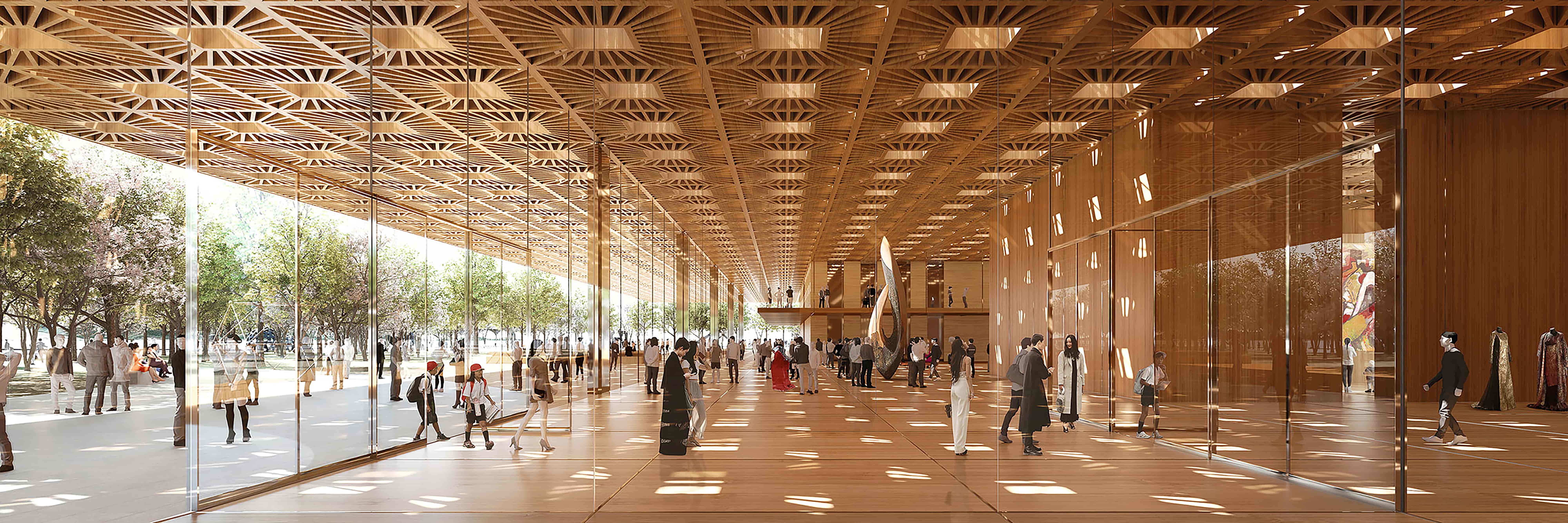… by elevating the below-grade cultural center to an at-grade Gallery covered by a majestic canopy; …