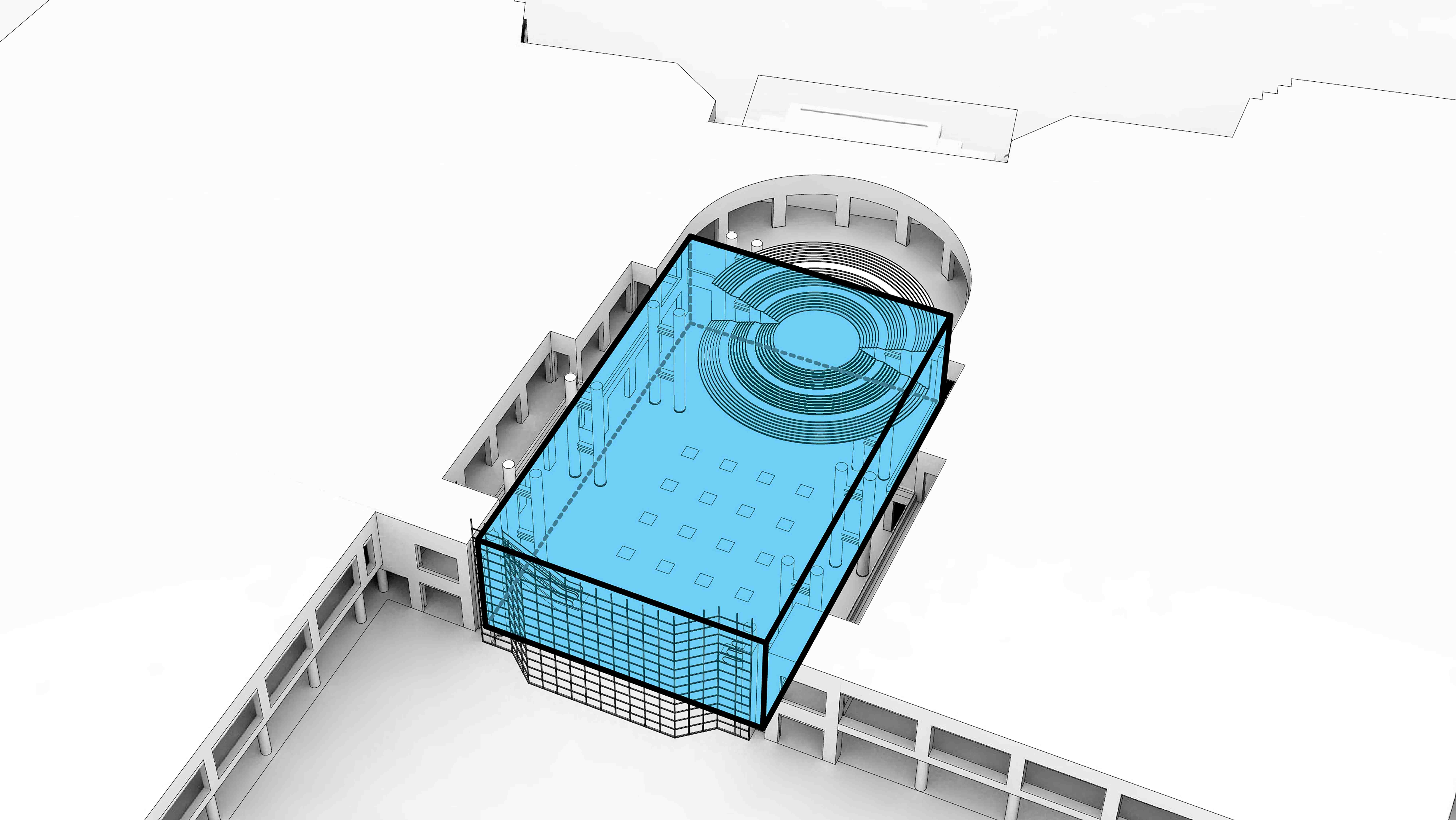 PROGRAM 250-seat performance venue and “speakers’ corner” that retains the benefits of the Winter Garden’s to-be-demolished grand stairs and improves connectivity