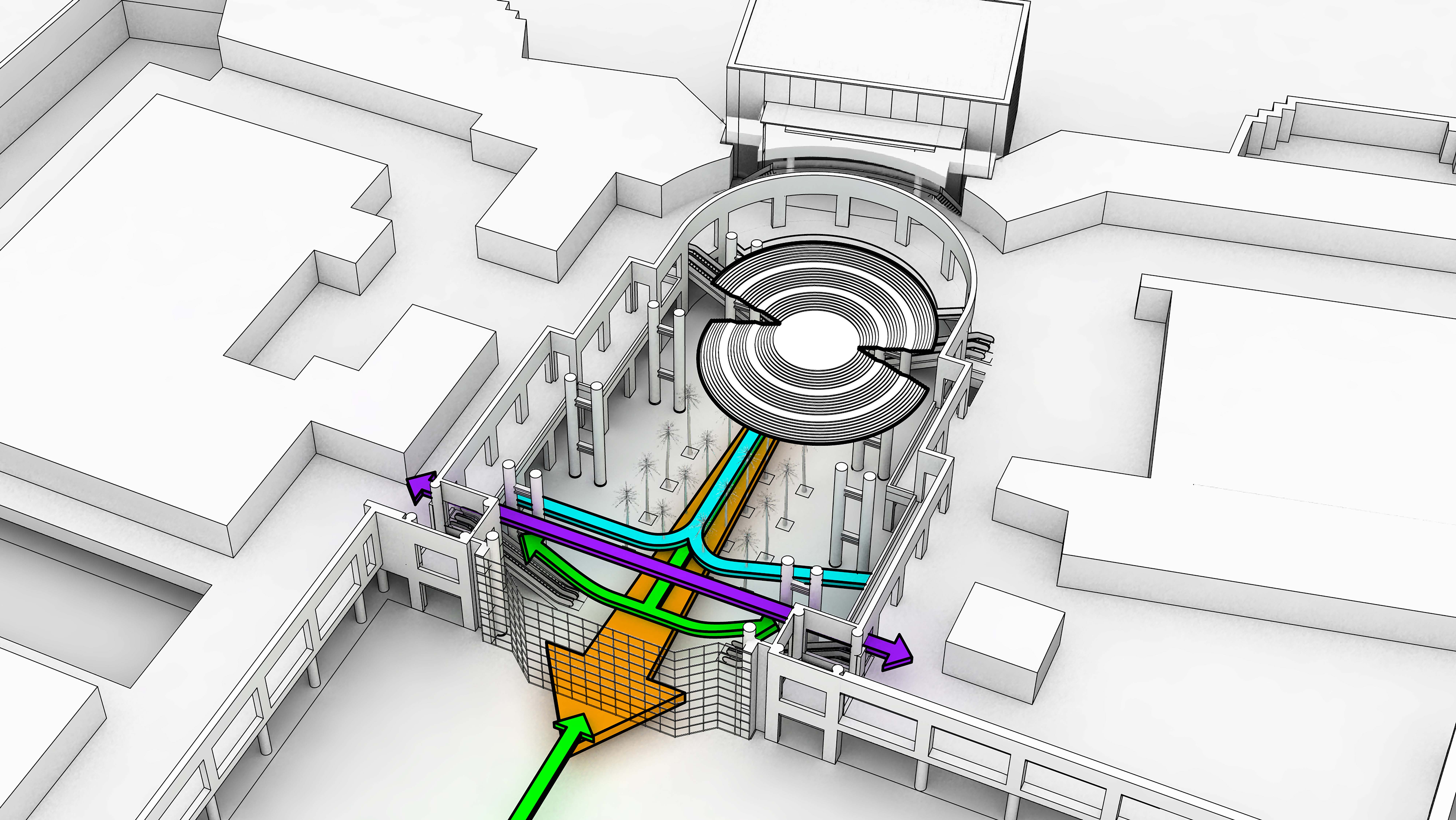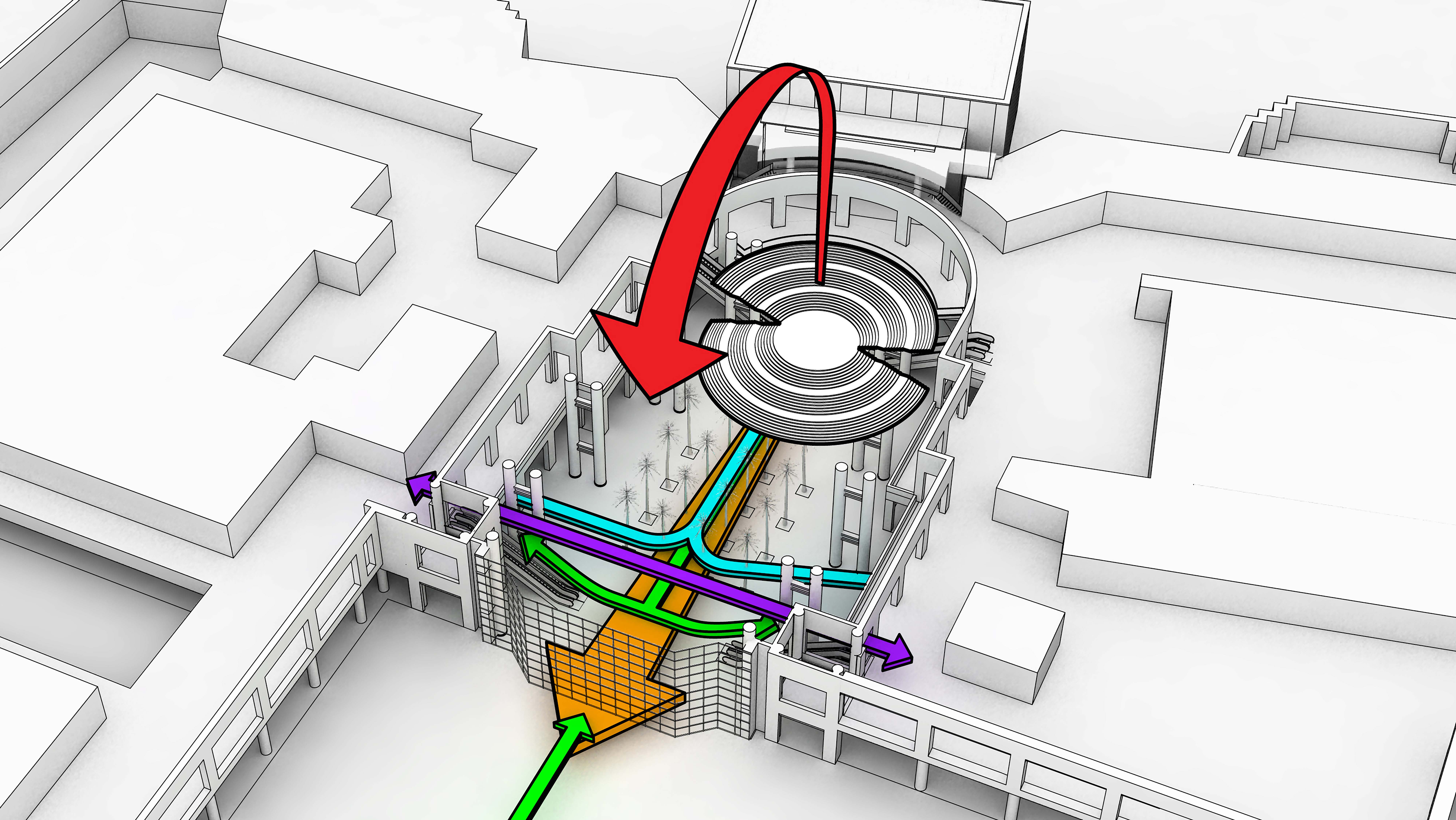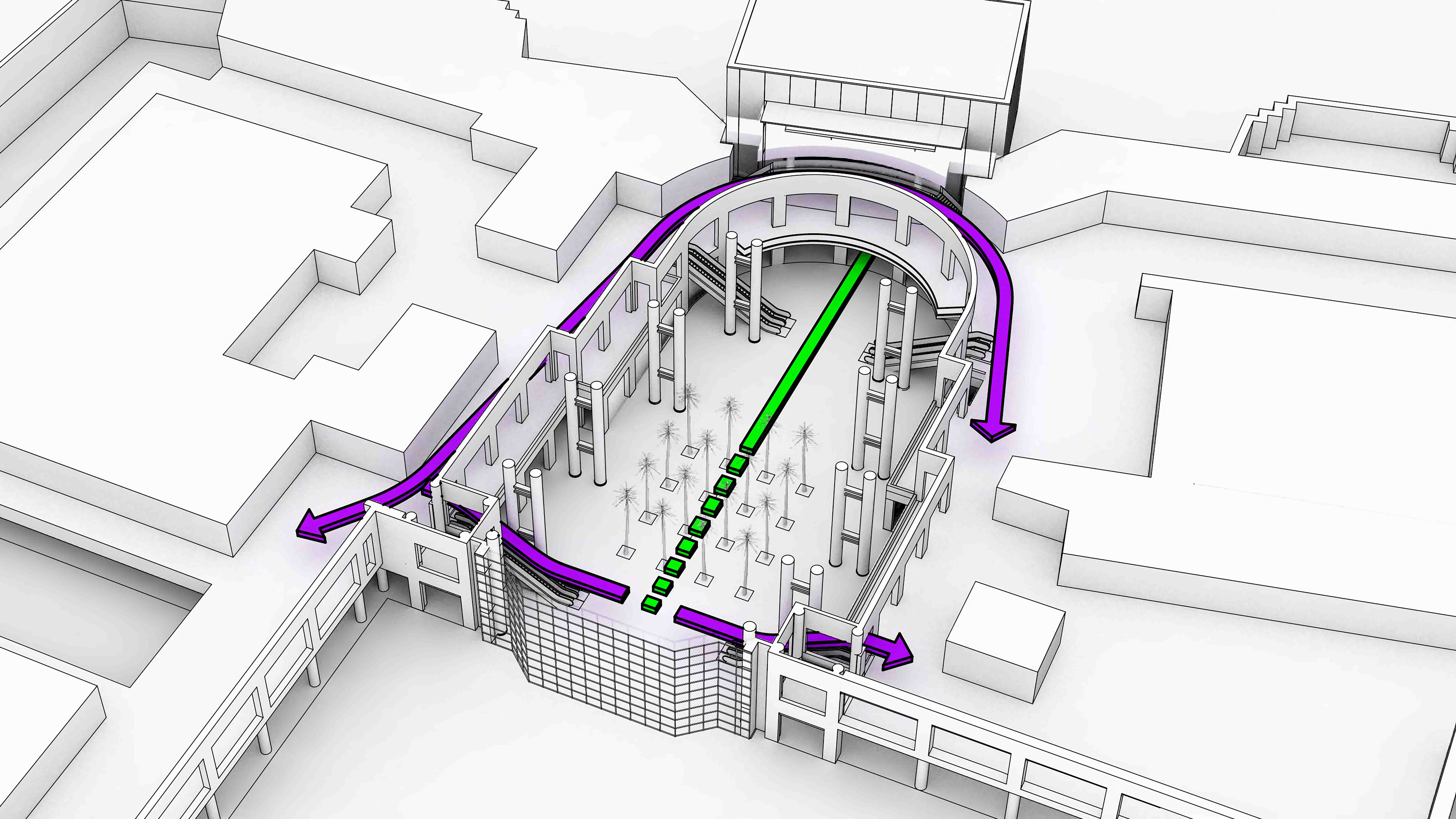 … removes the grand stair and its benefits, while reconfiguring the Winter Garden as a pass-through.