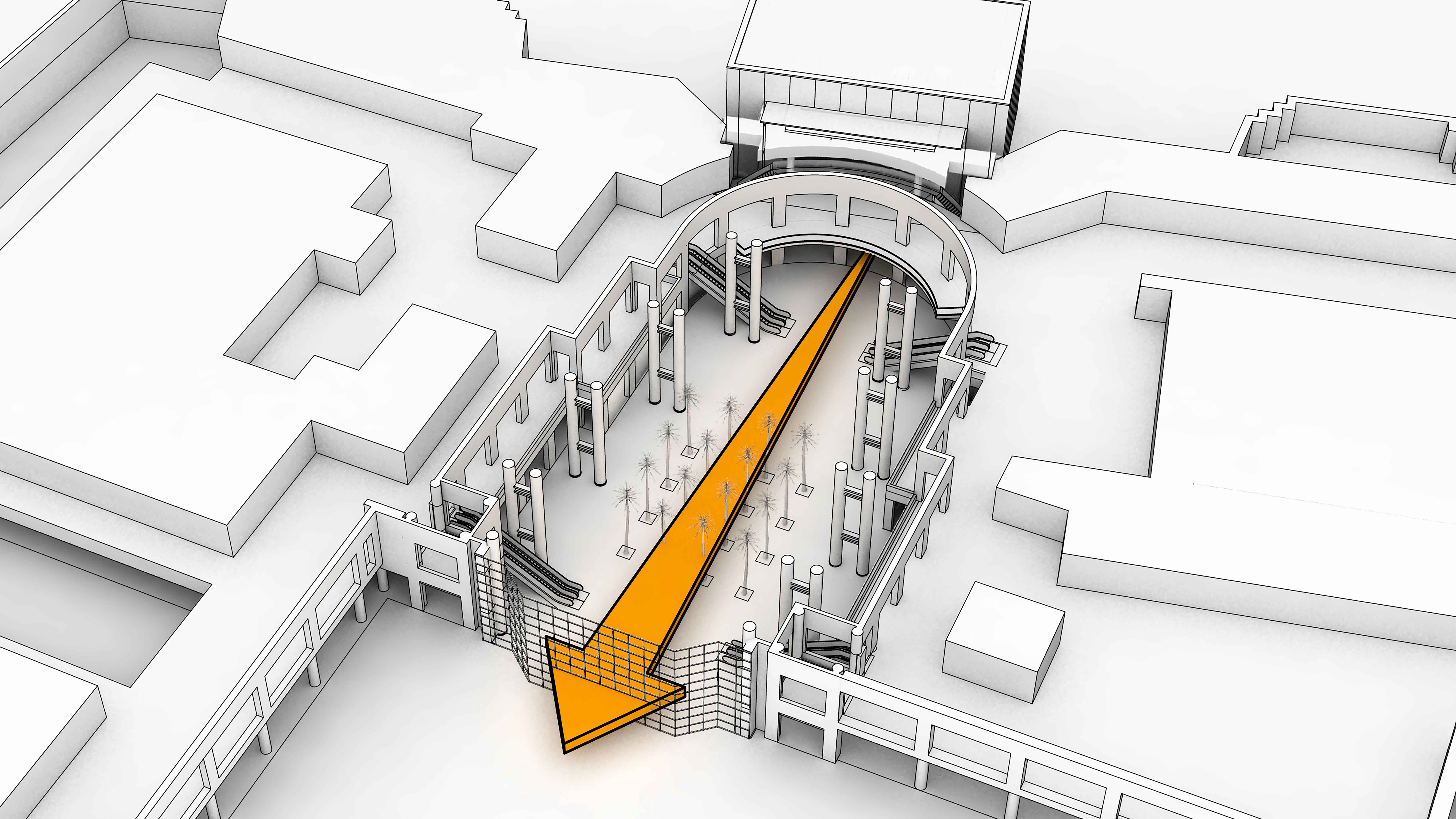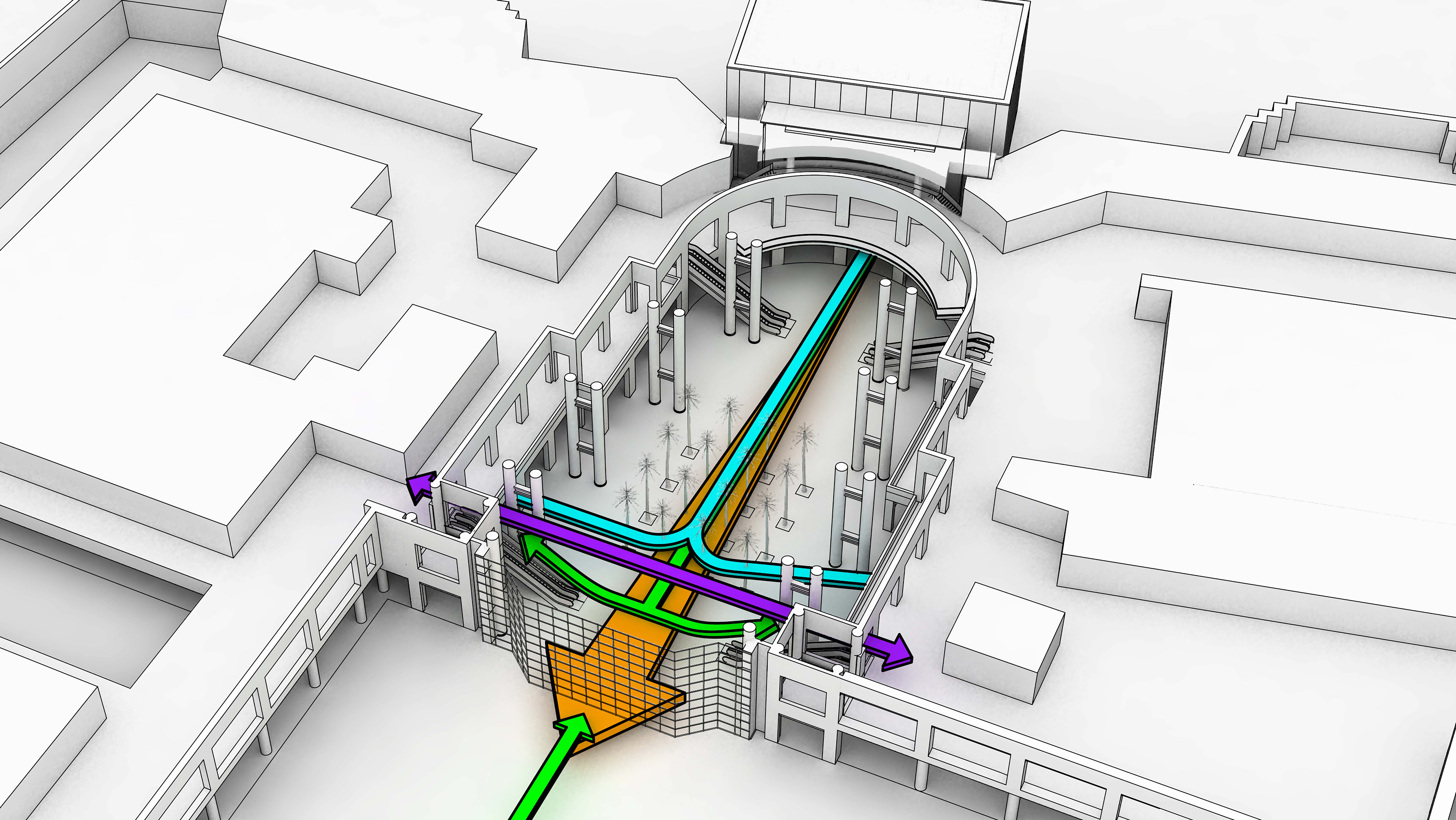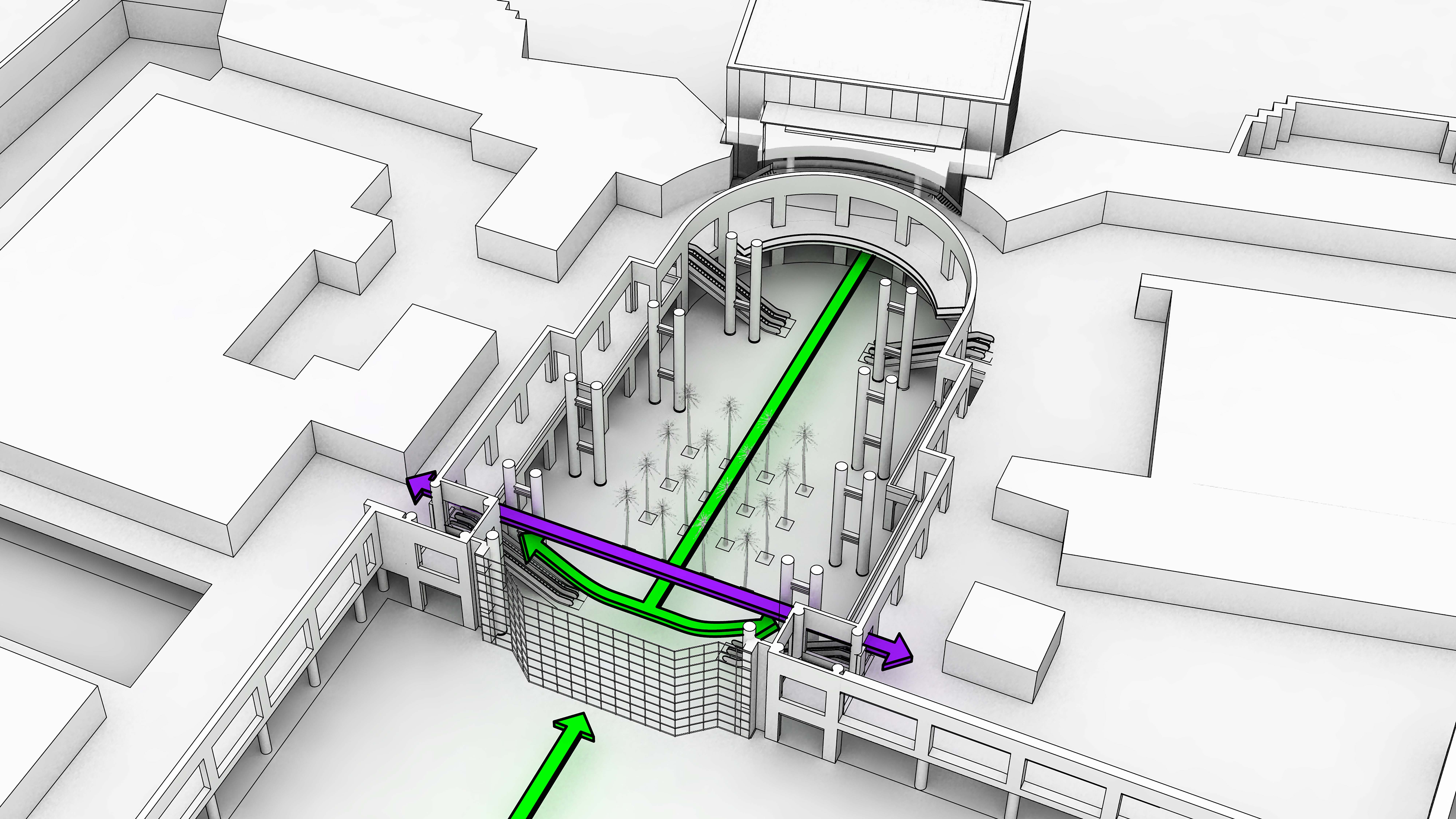 … removes the grand stair and its benefits, while reconfiguring the Winter Garden as a pass-through.