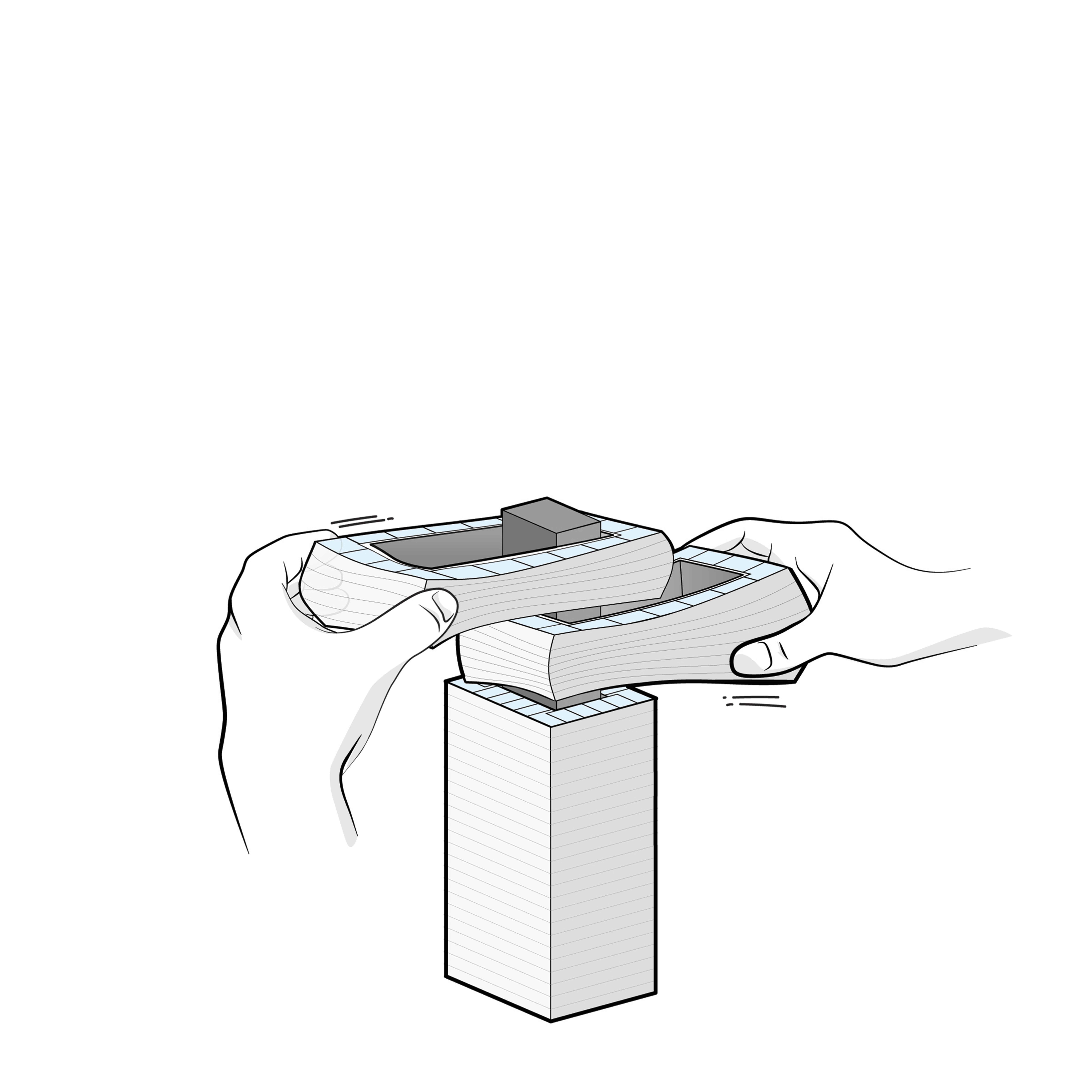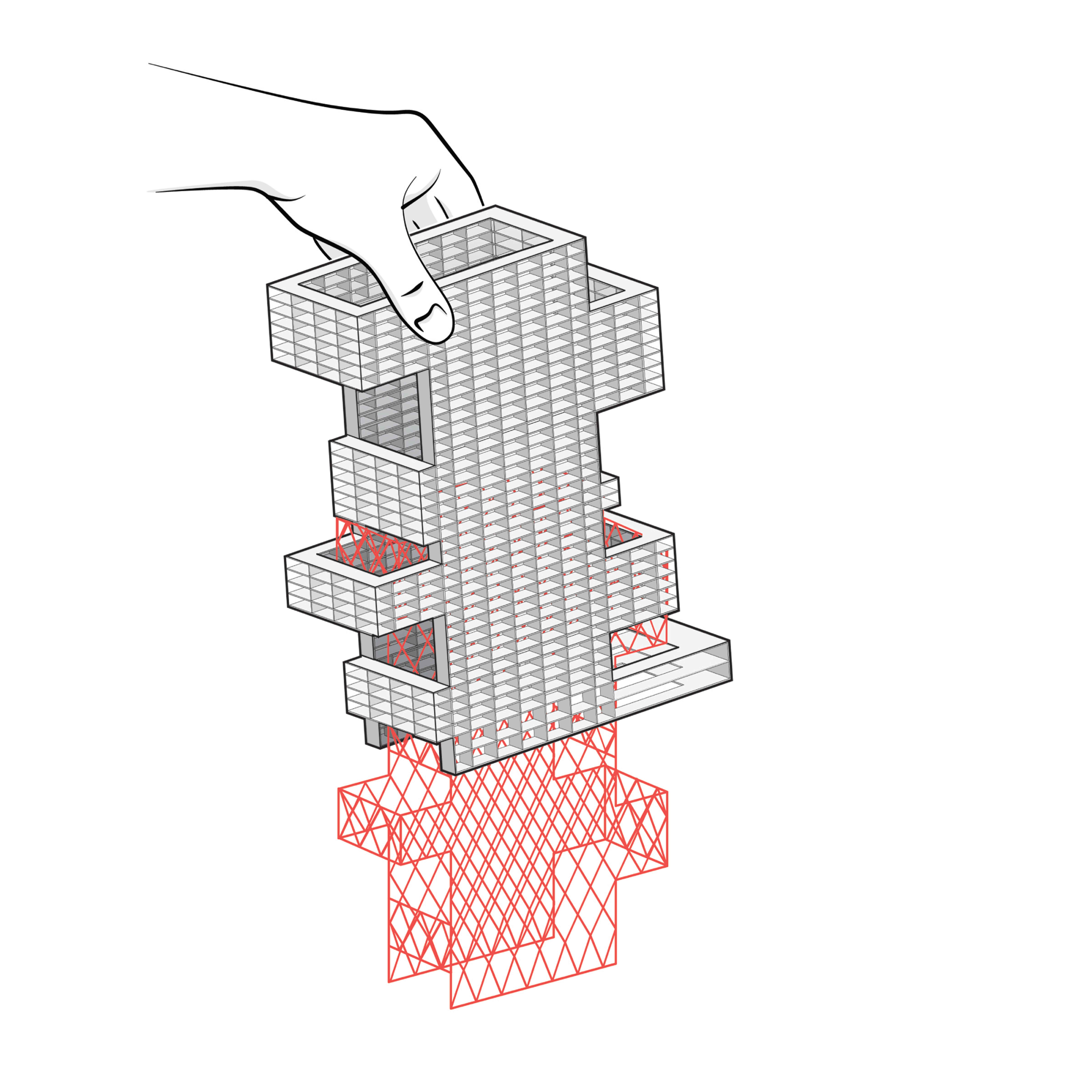 By pulling blocks of the typical housing tower in opposing directions, the small units maintain their size, but are stretched …