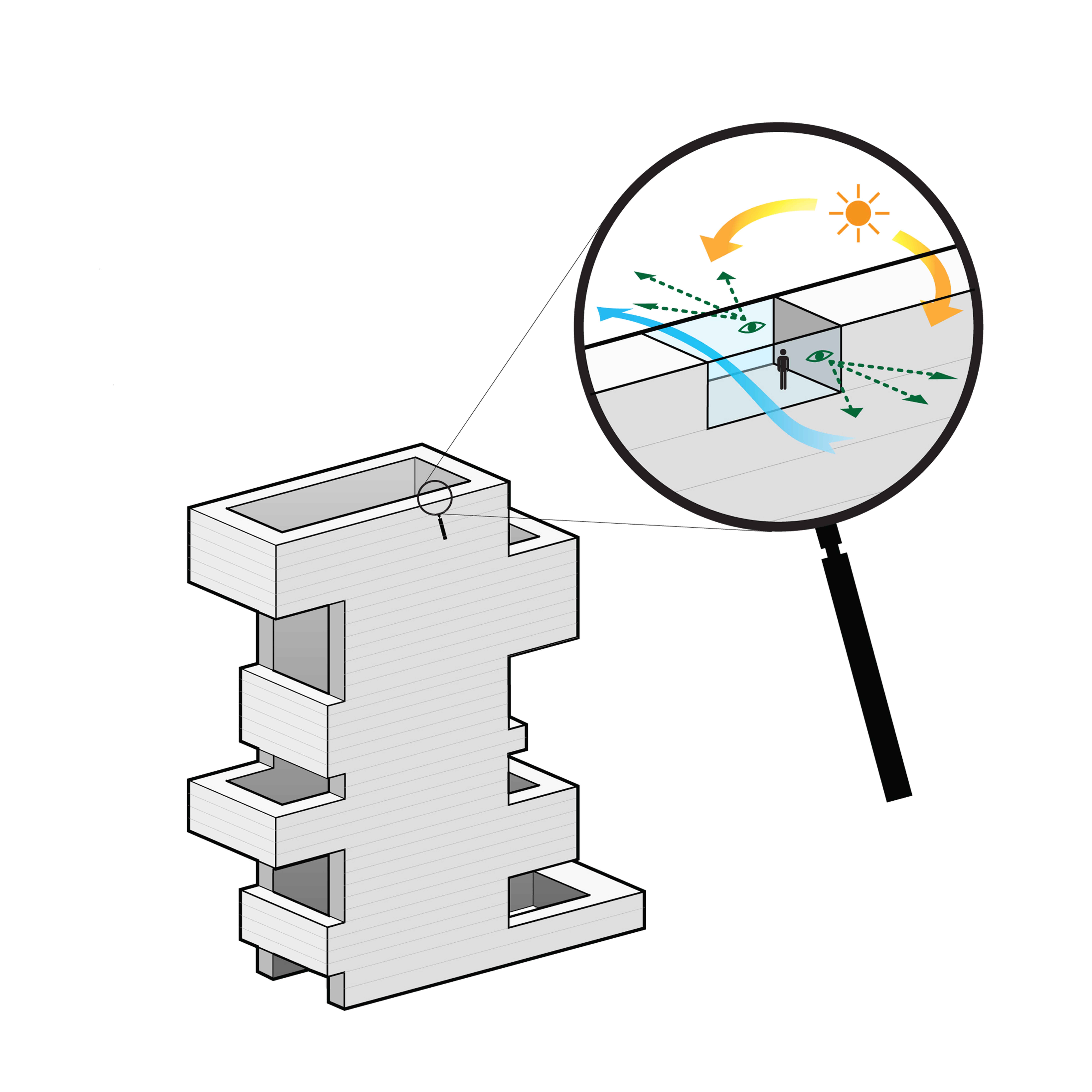 The resulting architecture provides views and daylight from both sides, and excellent cross-ventilation.