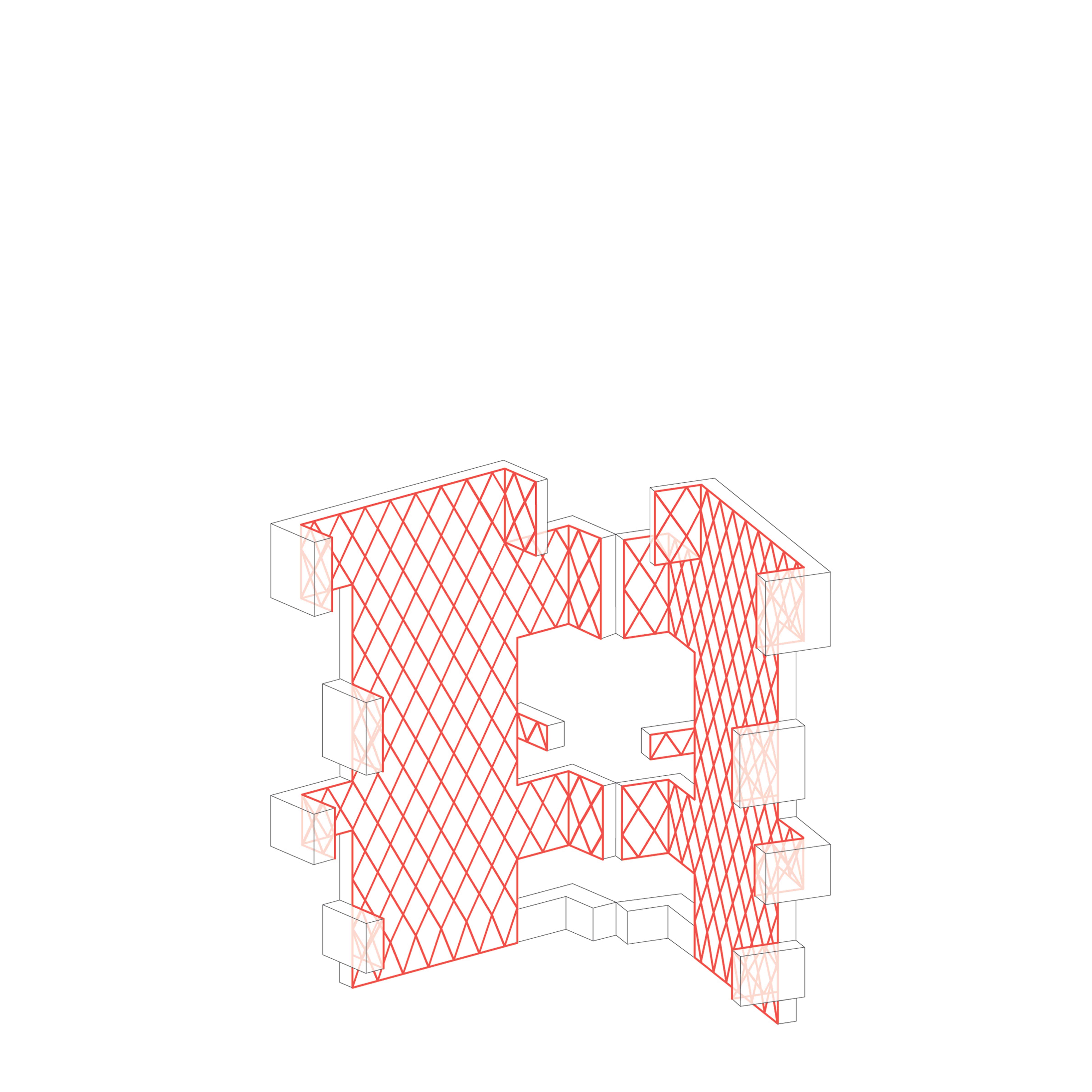 … to create adequate continuity of the building’s primary structure: a concrete-encased steel mega-brace that encircles the courtyard.